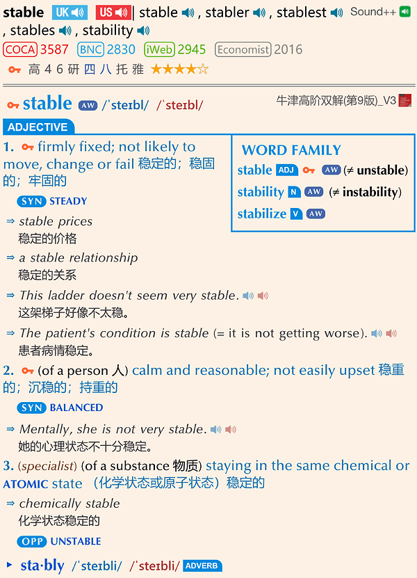 ★★★★☆ 4星词汇。源列表4星词汇共有1388个,词频是最常用的1354~2741。