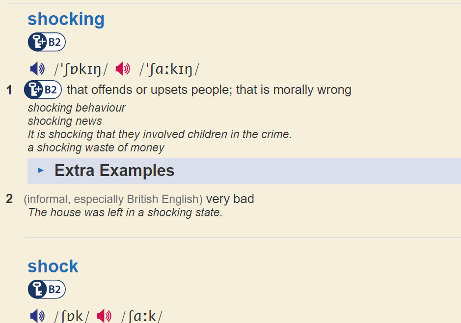 查了下shocking没看到你说的衍生词呢,截个图看看?