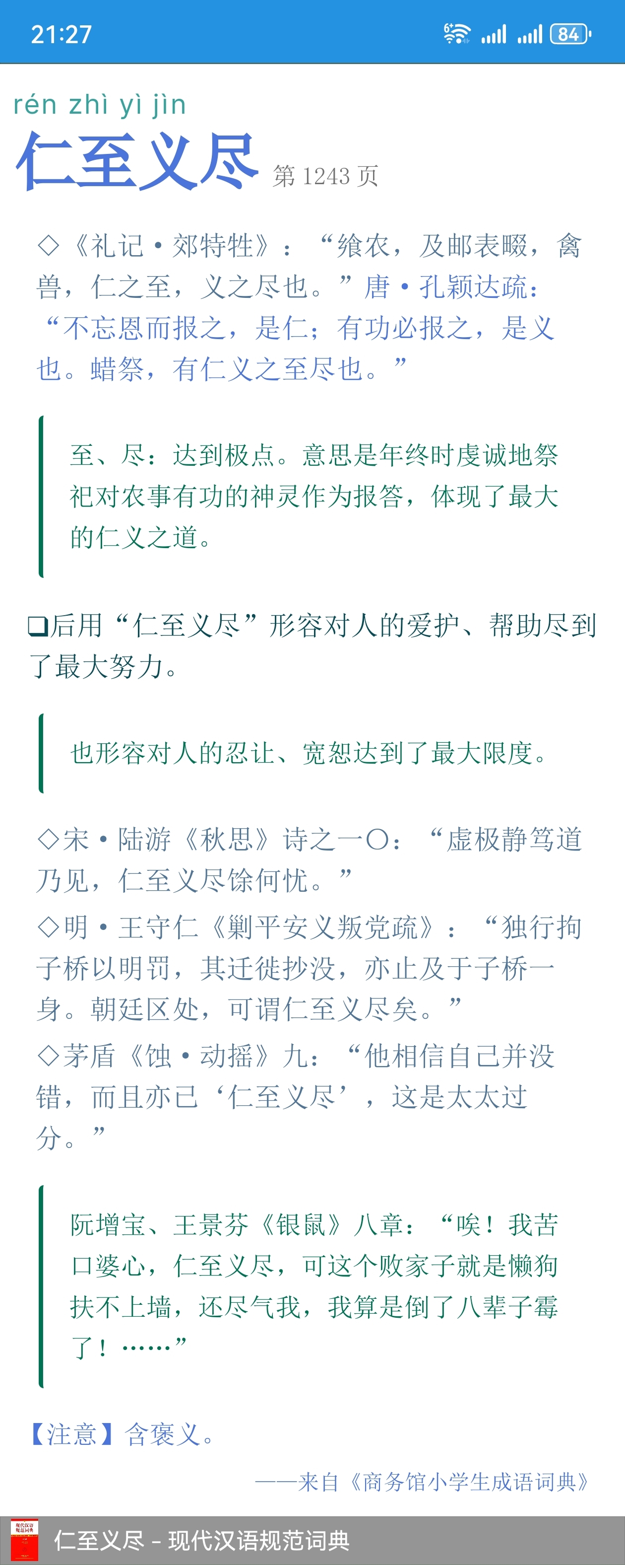 仁至义尽,解释与例句位置搞反了。