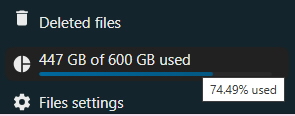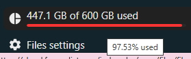 For some time now I have been seeing a red line on the free space indicator for the directory, but I was working easy, because it said above that we have over 150 gigabytes free before we reach our limit. Today a message appeared in the notifications that we are using over 96 percent of the limit, and then I hovered the mouse over the indicator itself, not paying attention to the writing above it. And the following image appeared: