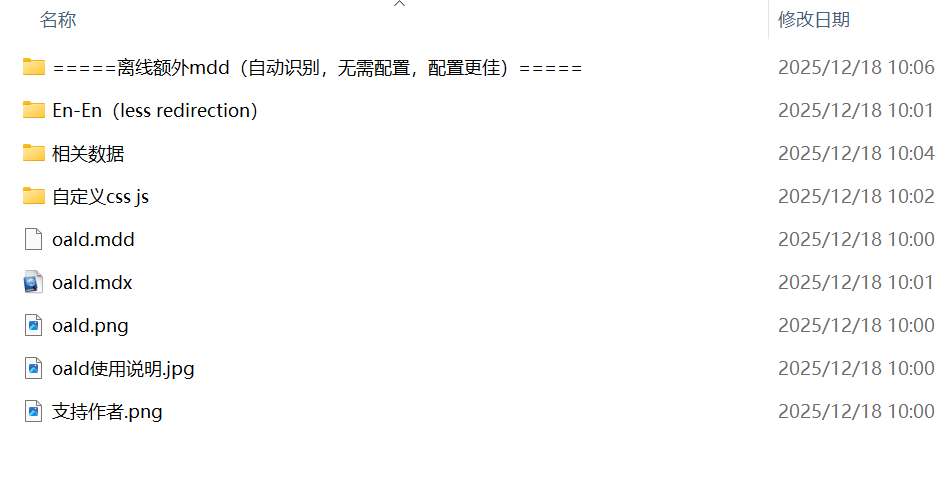 L大这个词典包我下载了,但是怎么都装不上。我已经在欧路词典里成功装了好几个牛津和朗文词典了,但L大这个我装了几次,要么乱码,要么不显示词典内容。请教一下,我截图里哪些文件应该拖到欧路词典的安装文件夹里?我英专生真的不太懂技术,学会给欧路词典导入扩展词库的步骤已经用尽我的洪荒之力了。我以前下载的词典包都是把所有文件直接拖进欧路词典里就行了,L大的词典包里好像很复杂,不知道应该把哪些拖进去。谁能教我一下,救救孩子吧