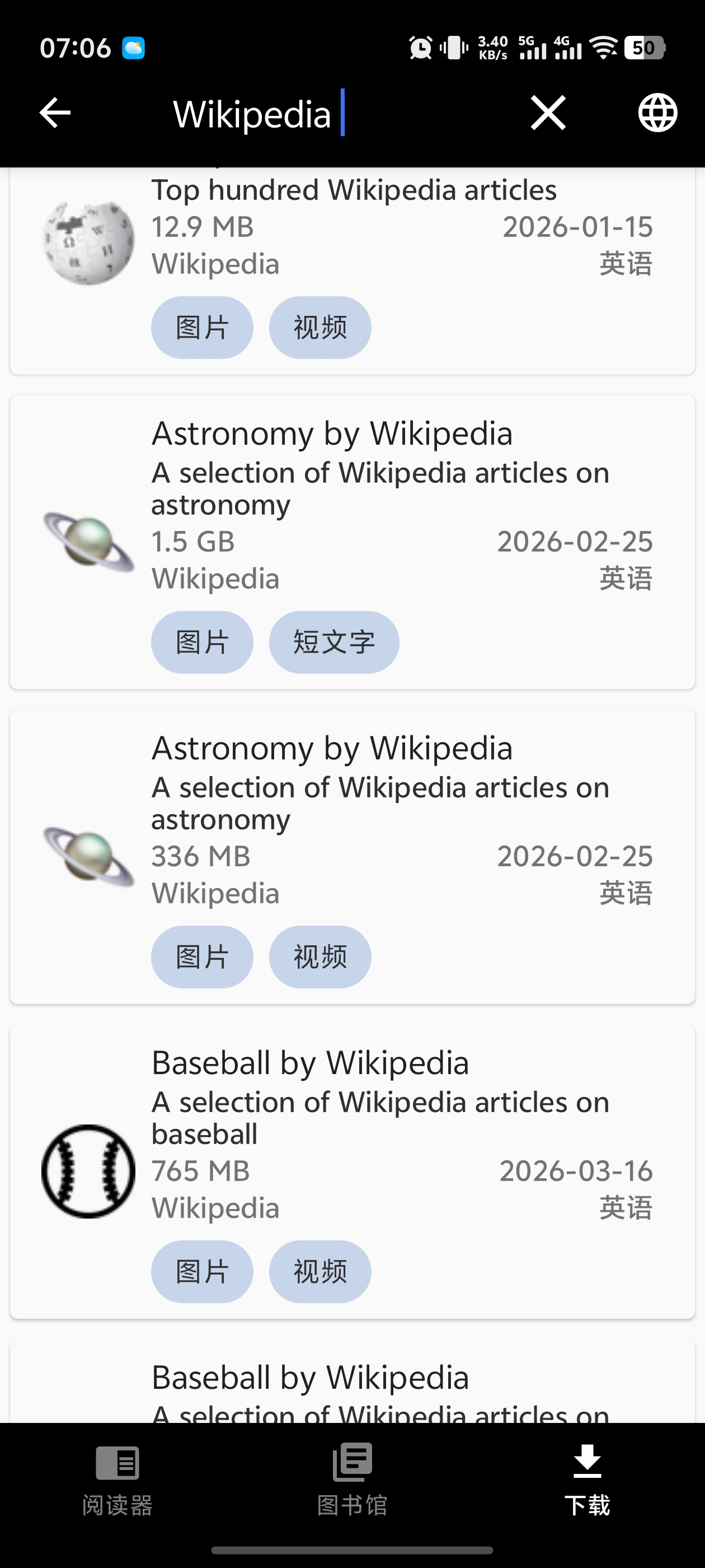我看kiwix又数学、物理、天文、化学、电影、篮球之类的小包。