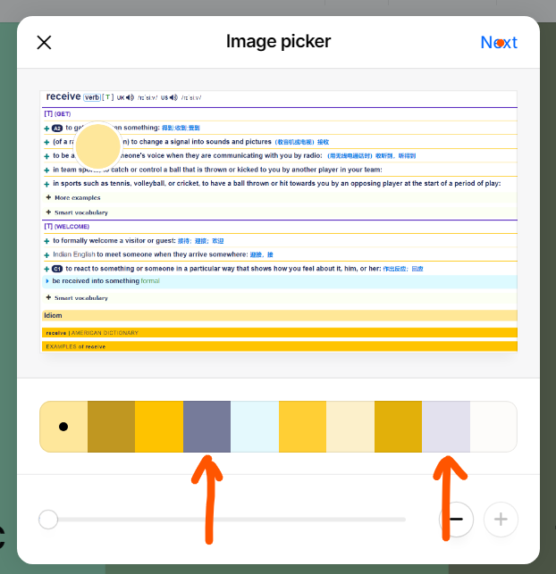 我将词典截图扔到Create a Palette - Coolors里,生成一套配色。箭头所示的两个紫灰色可以试一试。