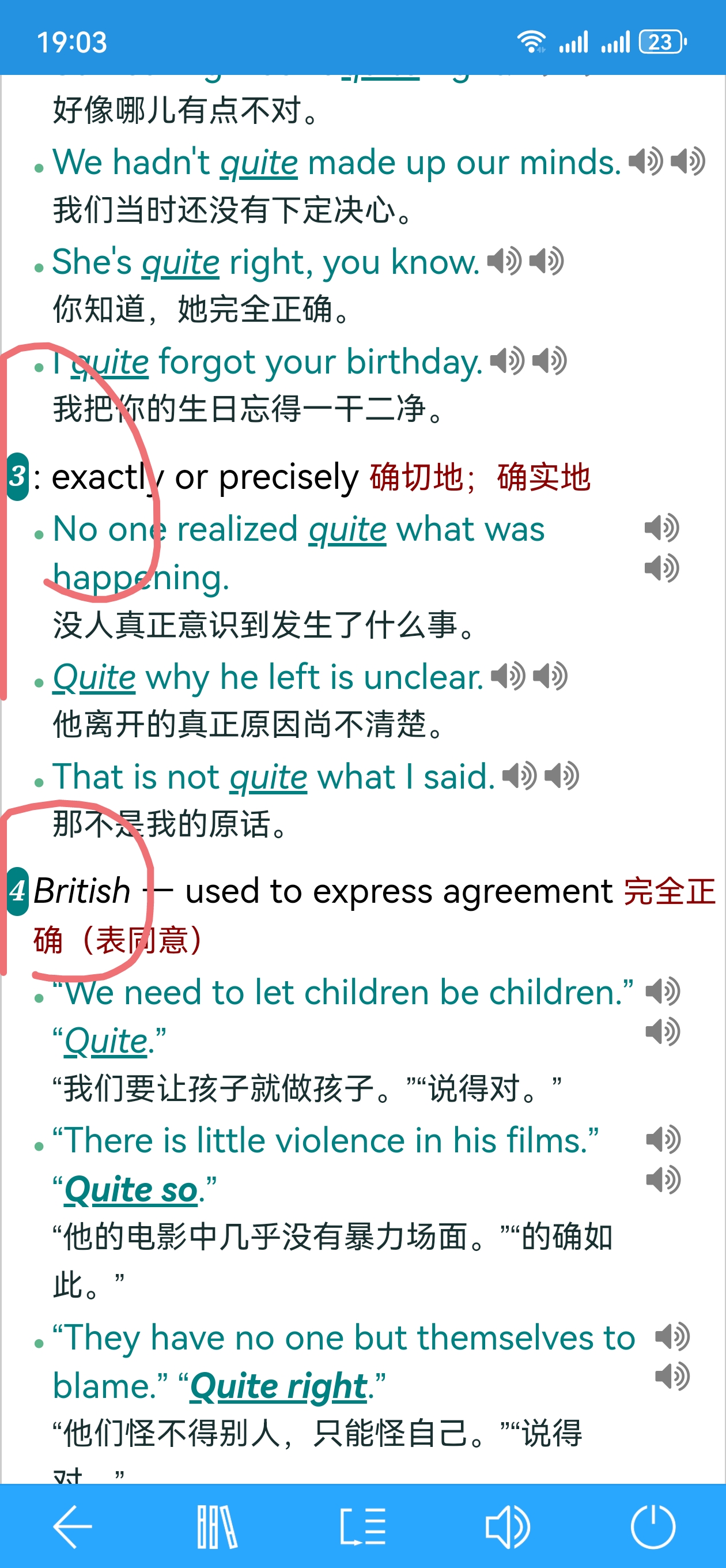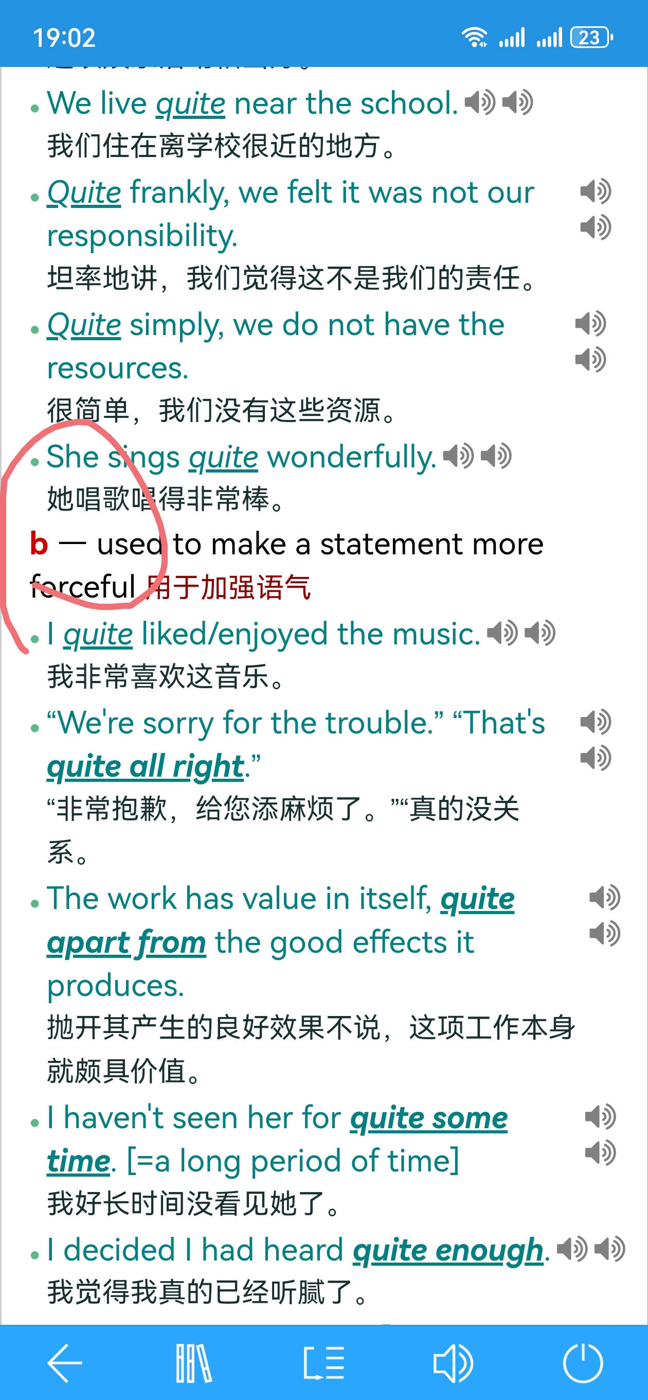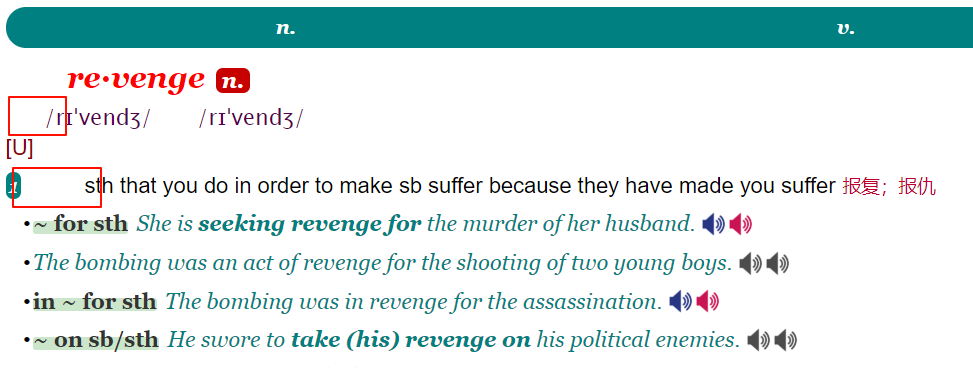 2.为每个例句包括它的中文释义左侧添加一个竖着的标识条,便于区分于下一个例句的界限。