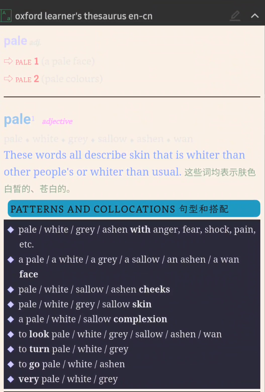 可以调 dark theme的对比 饱和度。 但dark mode 有些bug,很多背景都没有invert.比如下面这三个词典