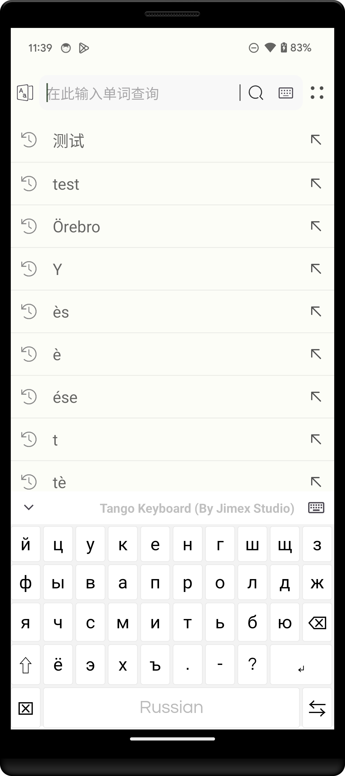 - 打开普通查词界面,在输入框右边会多出一个键盘图板,点击后即可加载使用