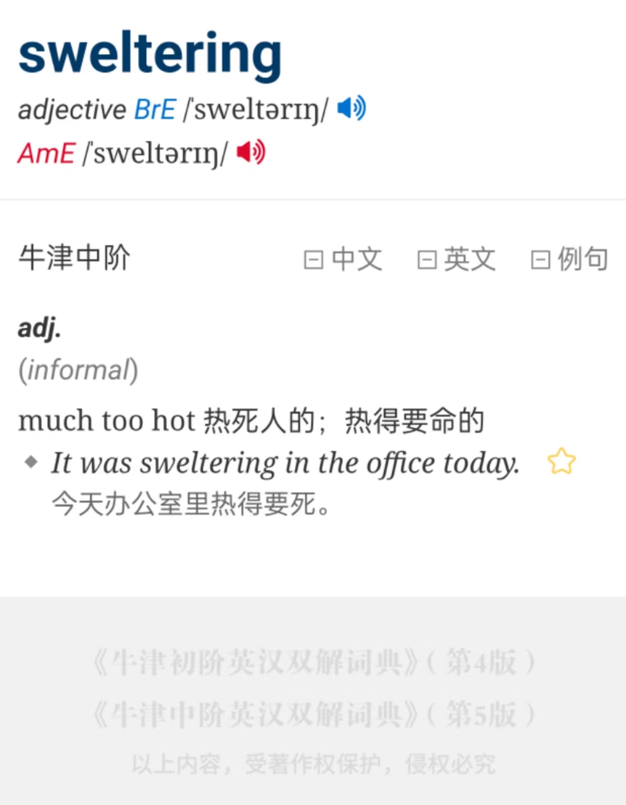 初步排除了版本问题,因为牛津中阶一直是商务印书馆负责,向来小修小补,没有重新翻译。