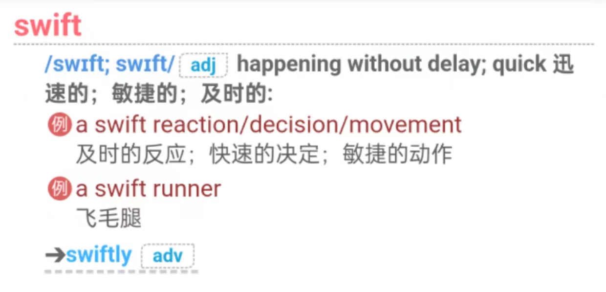 swift runner. 牛津10中文官网给的也是“跑的飞快的人”