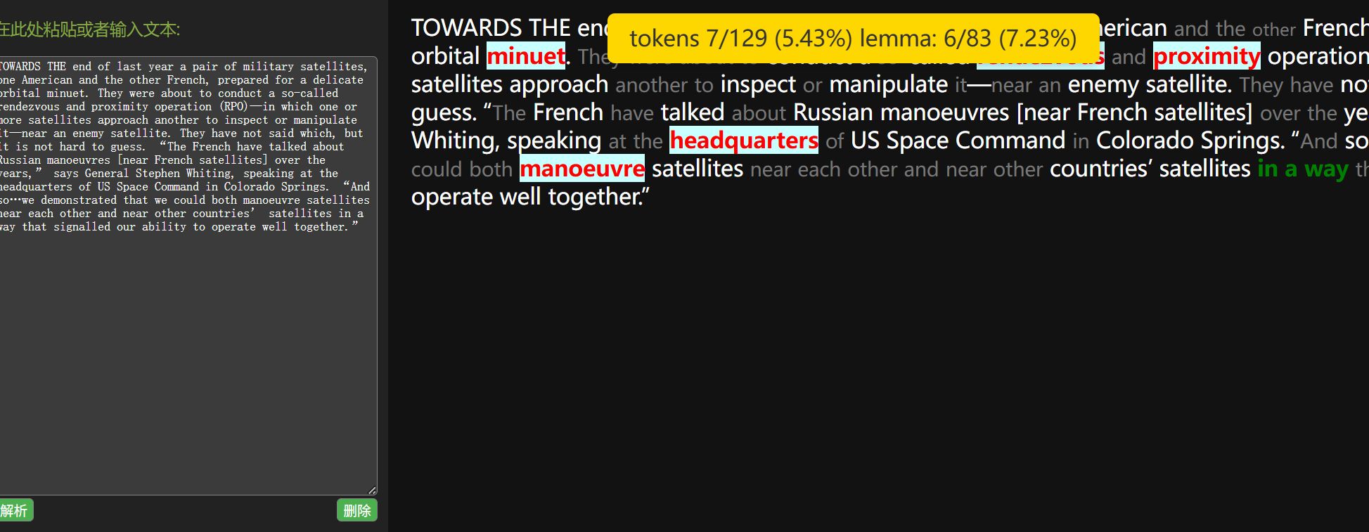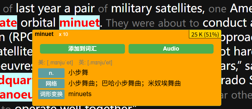 文章生词统计(inspired by n+1理论,双击i显示)