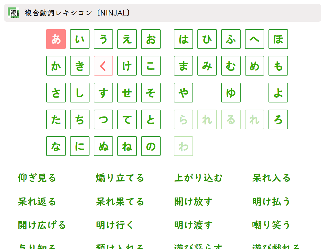 複合あ,可以查到所有あ开头的複合動詞(複合<五十音>) - 搜索
