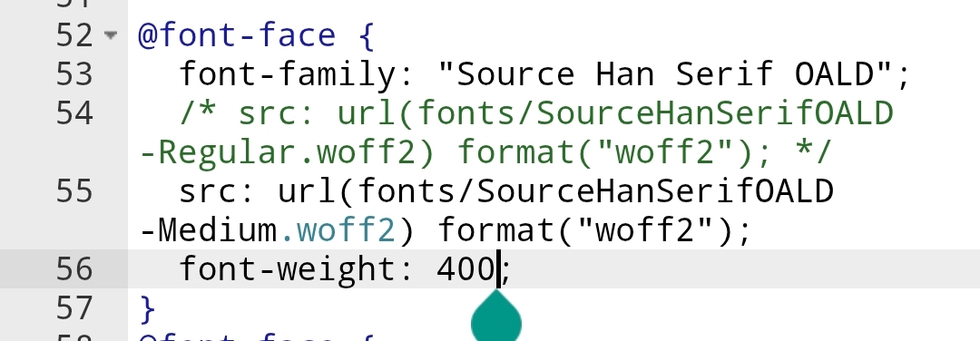 唉衬线字体就这样,mdd打包了个原生的500字重字体,54行Regular改成Medium可以切换