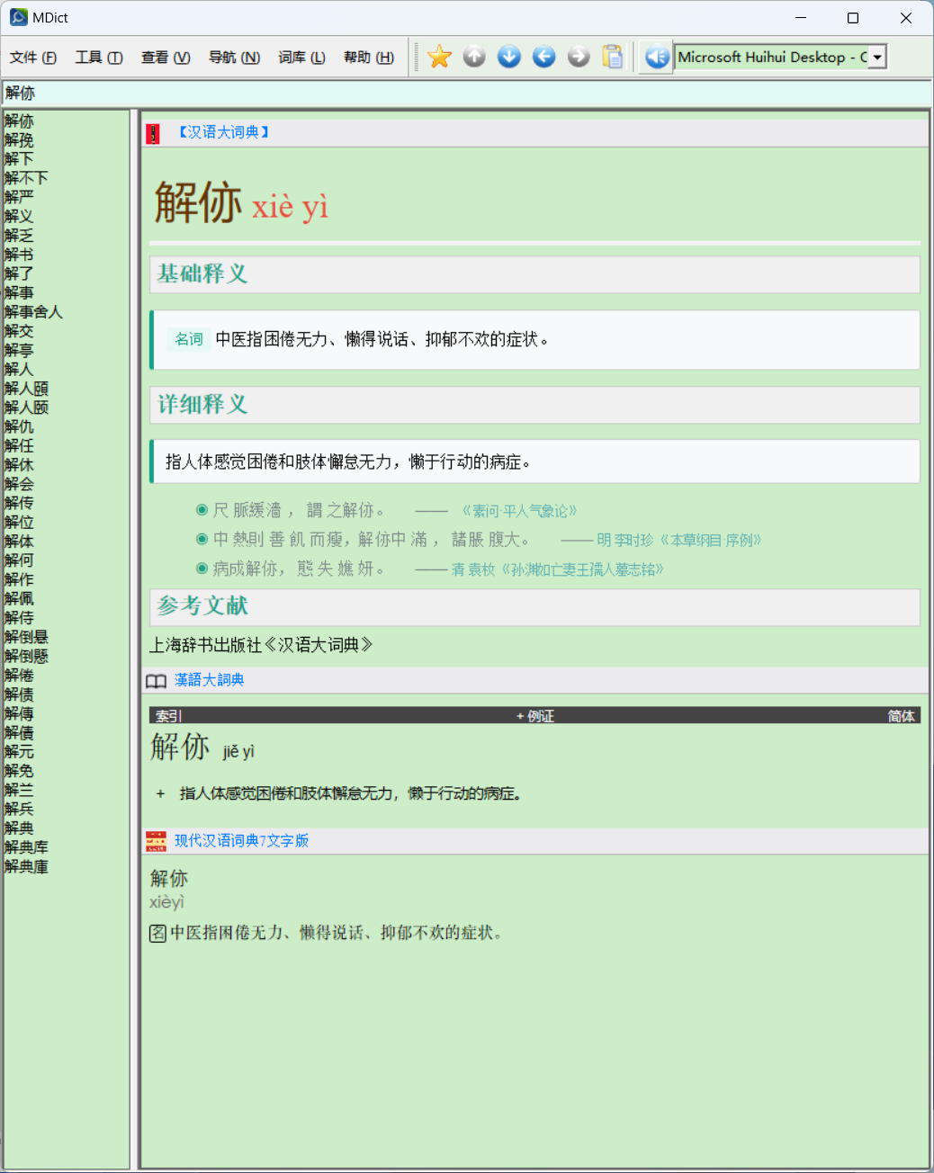 用下面的mdd替换网盘里的mdd的效果:缩小注解字号并改变颜色,使得例句和注解泾渭分明,更具观赏性。