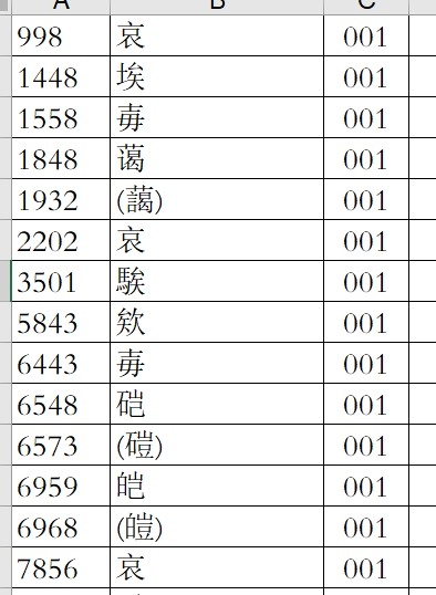 原书中就有一个检字表,Excel表中字头的顺序就是按照原书顺序排列的。