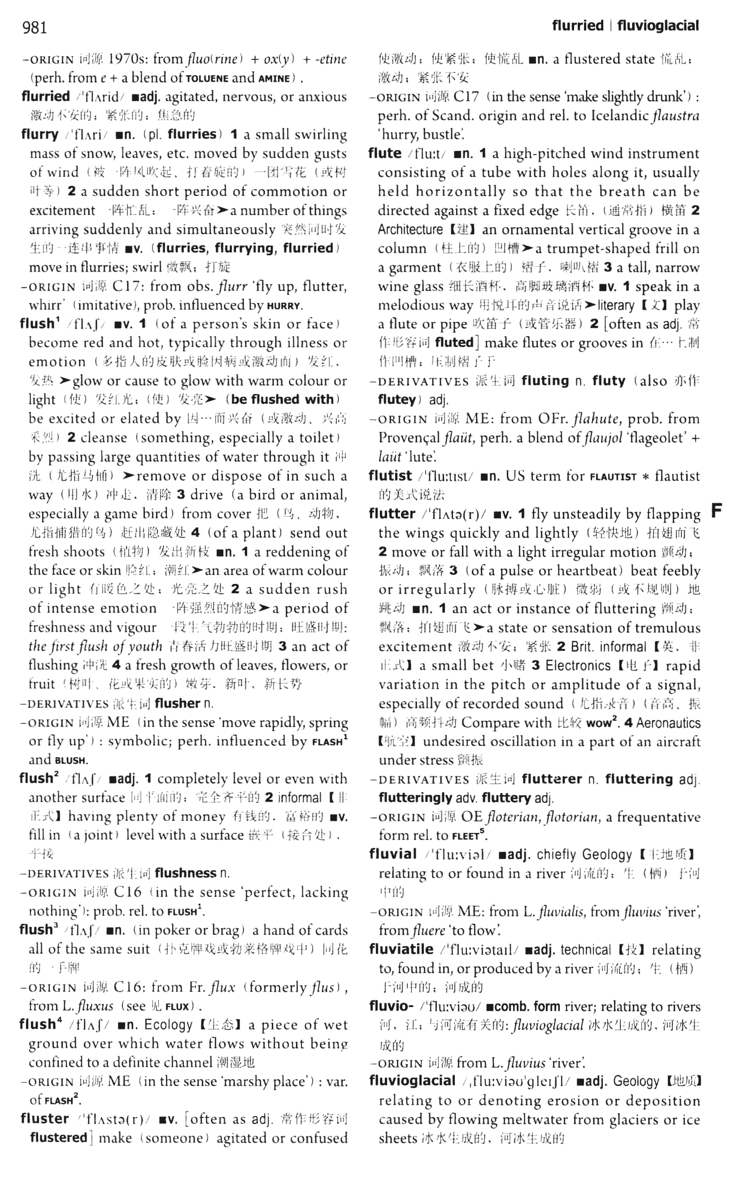 -DERIVATIVES 派生词 fluting n. fluty (also 亦作 flutey) adj.