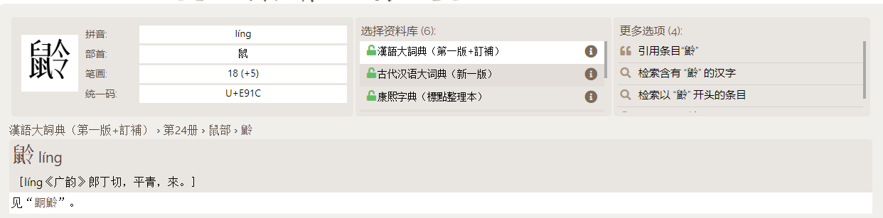 漢語大詞典(第一版+訂補) › 第24册 › 鼠部 ›