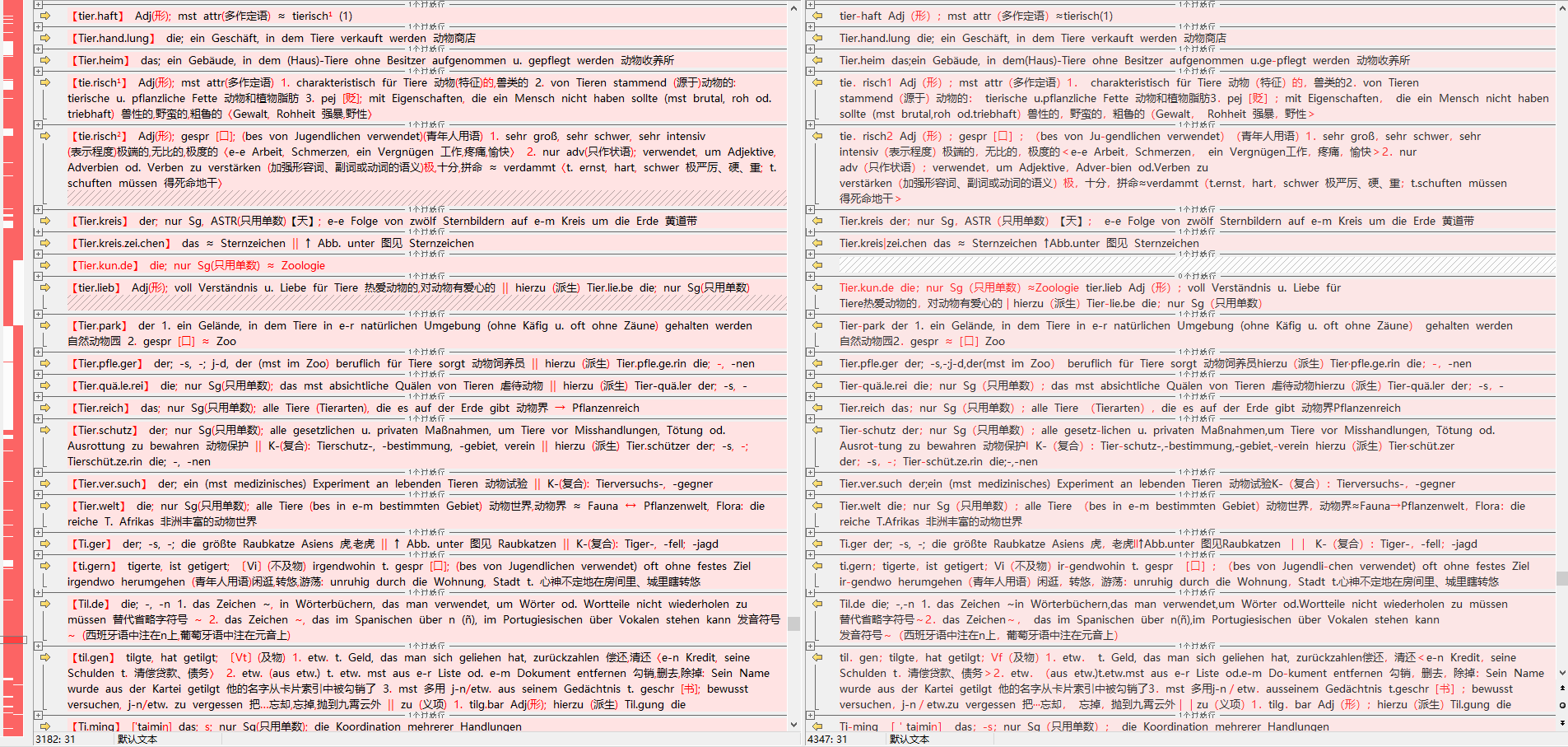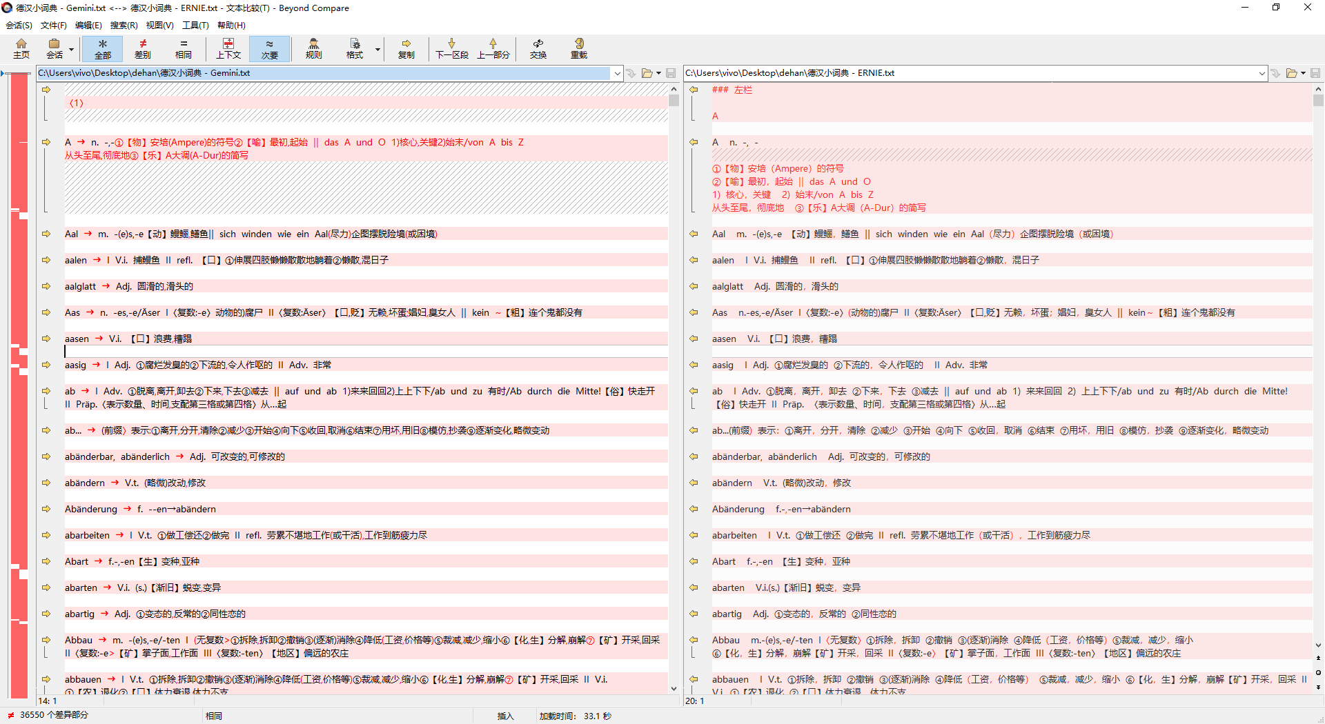 用百度的 ERNIE-4.5-VL-28B-A3B 又识别提取了一遍《德汉小词典》,该模型指令服从能力差,输出文本格式混乱,千奇百怪,但就文字本身的准确度论,还是很不错的,可以与Gemini的OCR结果对比校对来纠错。比较软件建议使用Beyond Compare。
