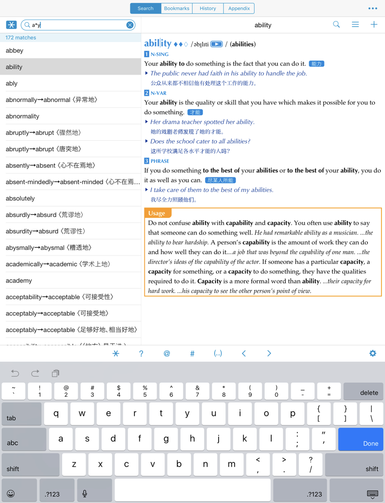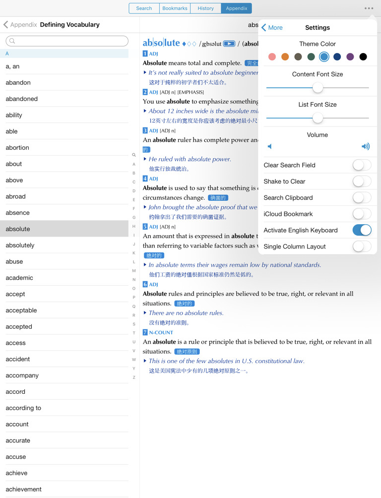 而且这一版的译文比较忠于原文(外研社5版的译文那个有点过火,8版有所改善)。这一版还有一大优点,所有派生词都翻译了中文,其他词典是不翻译的。