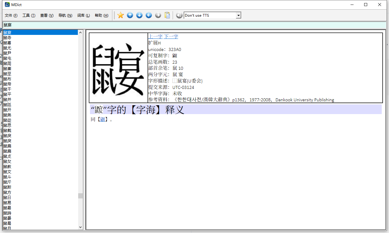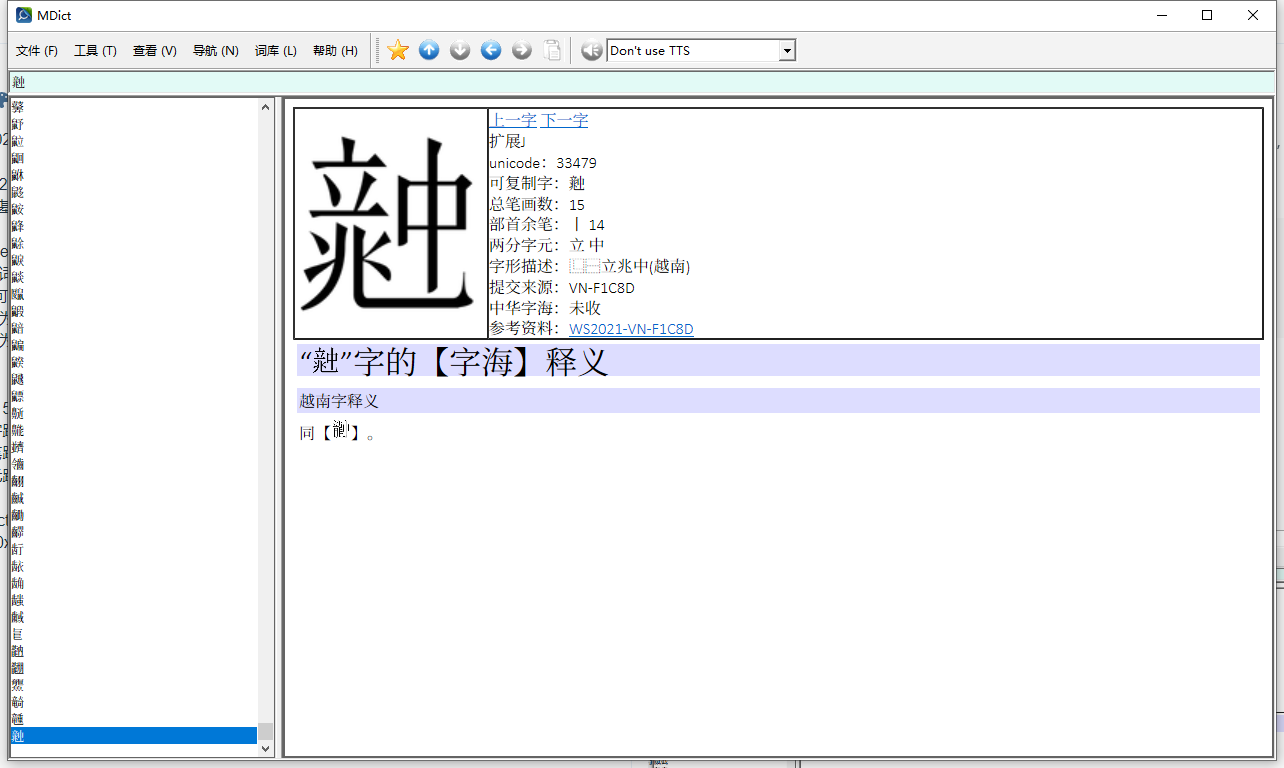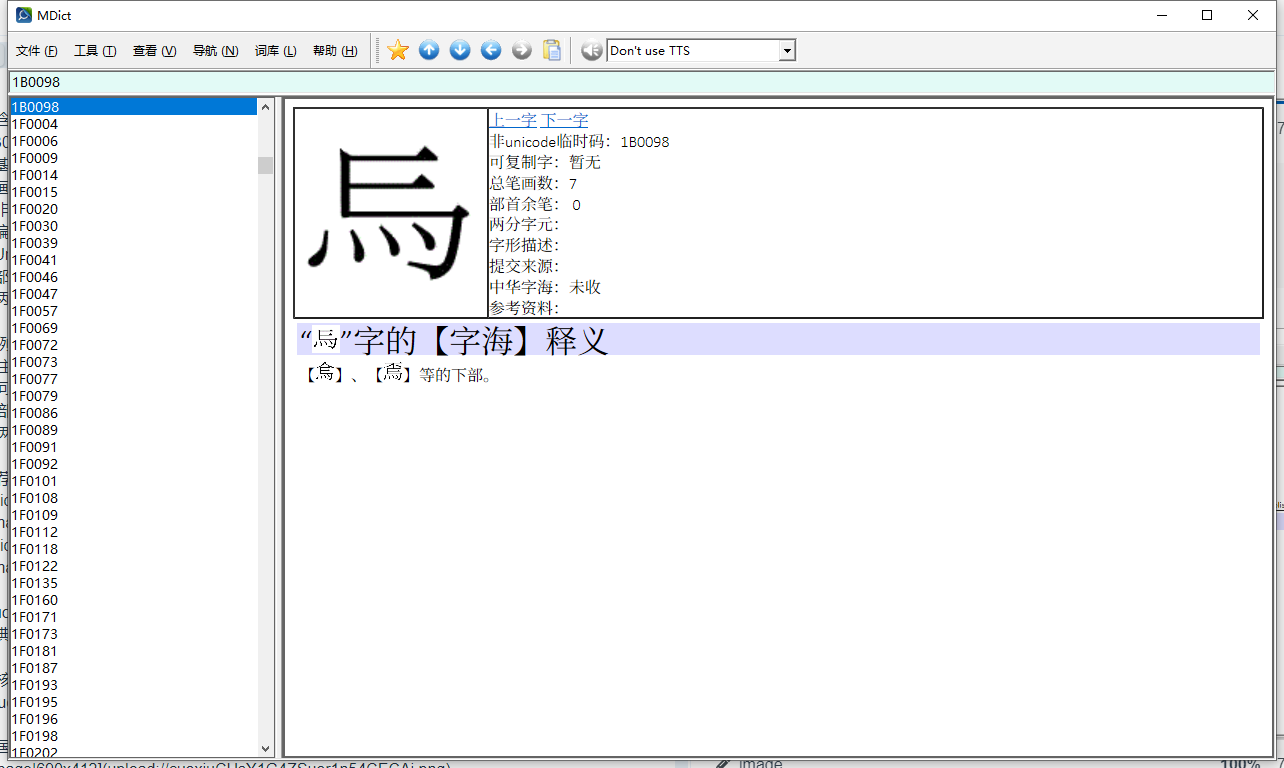 部首检索还是Unicode16的版本,还没更新到Unicode17,手机推荐用手机版,pc上,tango可以用mdx13色版,或者浏览器用13色网页版,ps基于Unicode的部首和余笔,部分汉字有点反常识