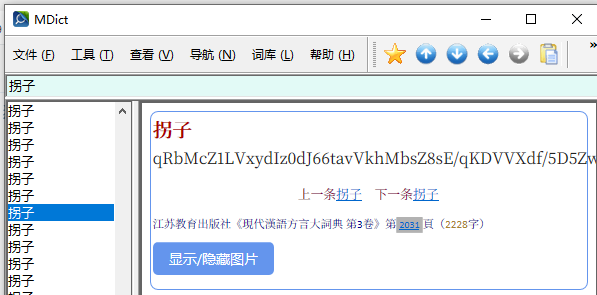 现在一个词头或词条下会出现多个图片,就拿拐子来说,它会在这个地区方言出现一个图片,在下一个地区又出现一个图片,最后光拐子下,可能会出现n多个图片,变成需要上下拖动才能看完的状态。