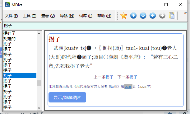 30个乱码修了16个,(剩下14个正文仅标明地区如“拐子-太原”)主要是当初测试第一个词“拐子”就出现乱码,不修心理膈应,