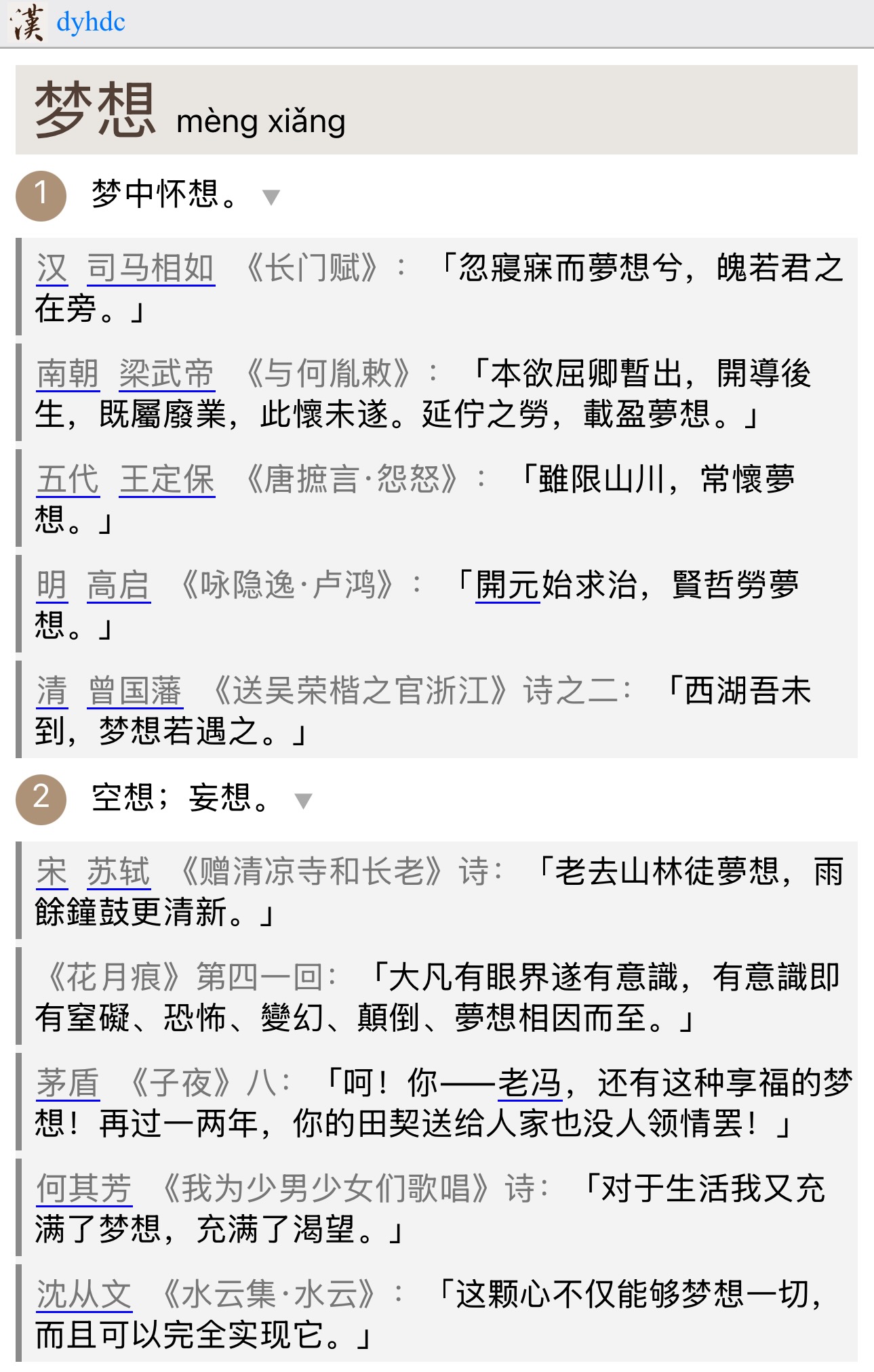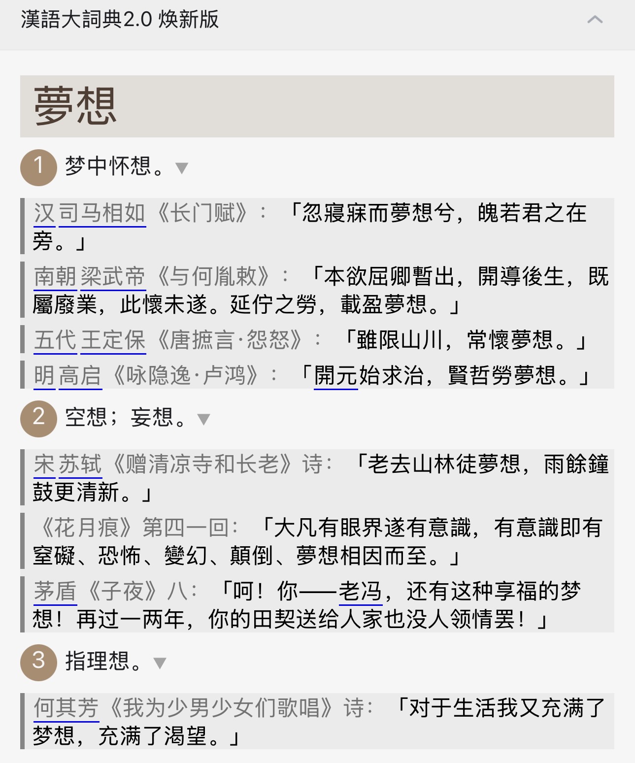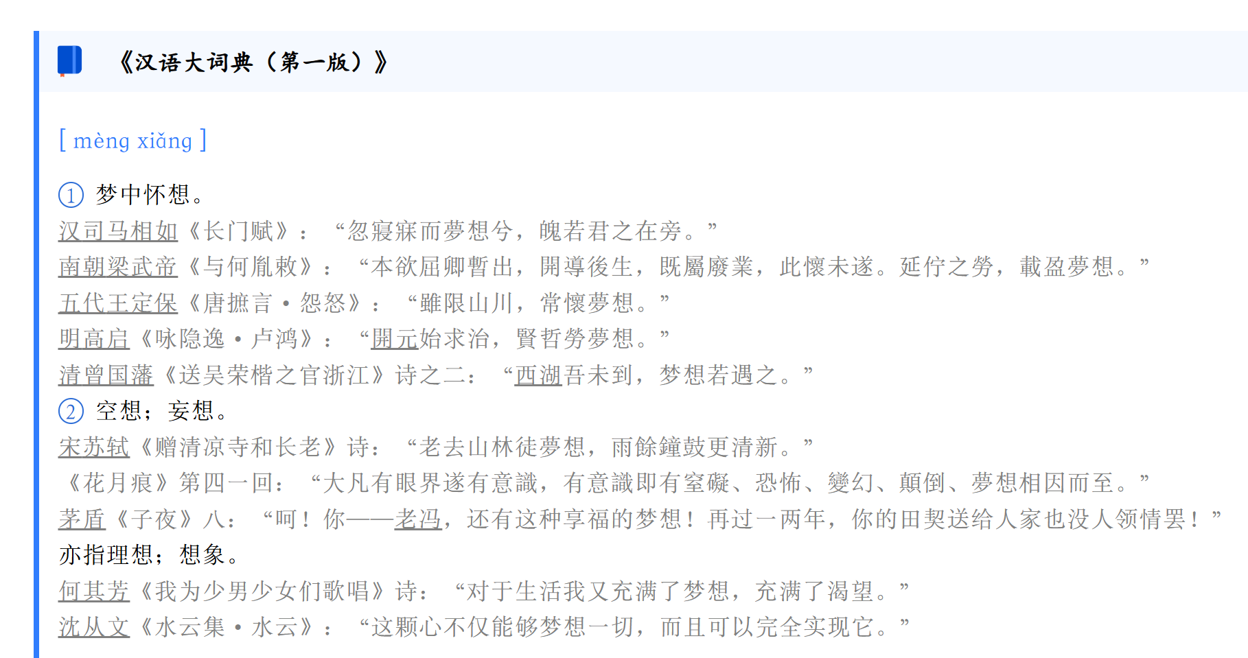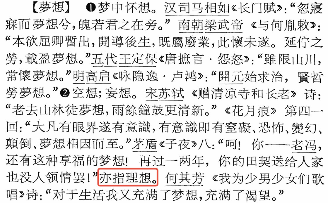 “梦想”条。纸质书截图,注意圈出的子义项: