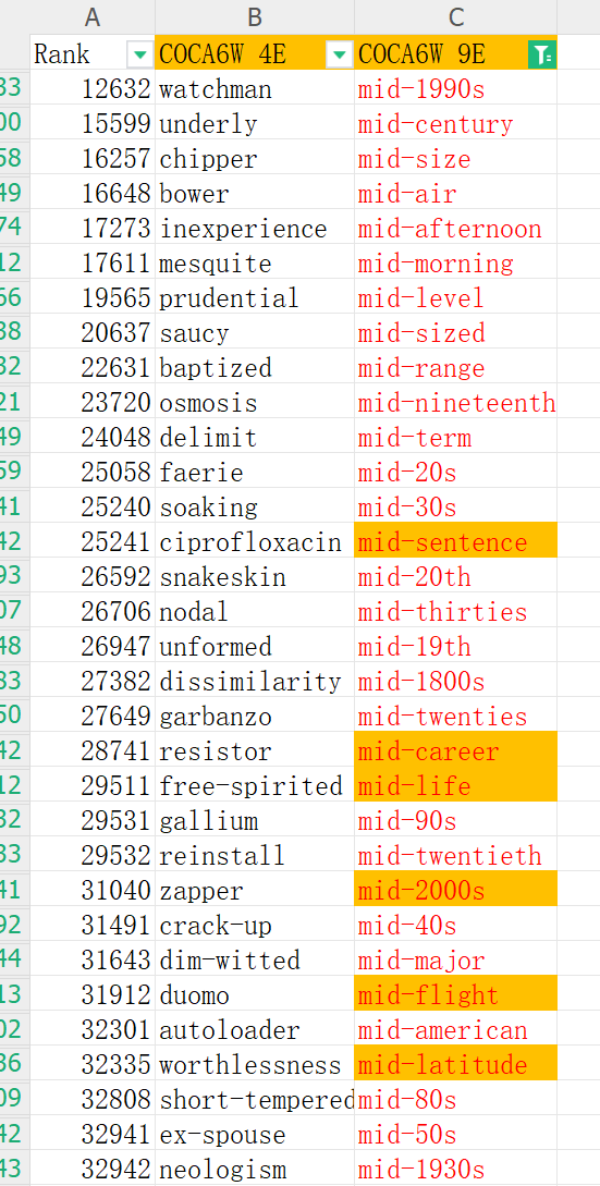 个人建议 BNC/COCA lists BNC/COCA lists ( 25k lemma family + 中英分级 ) - 英英 - FreeMdict Forum