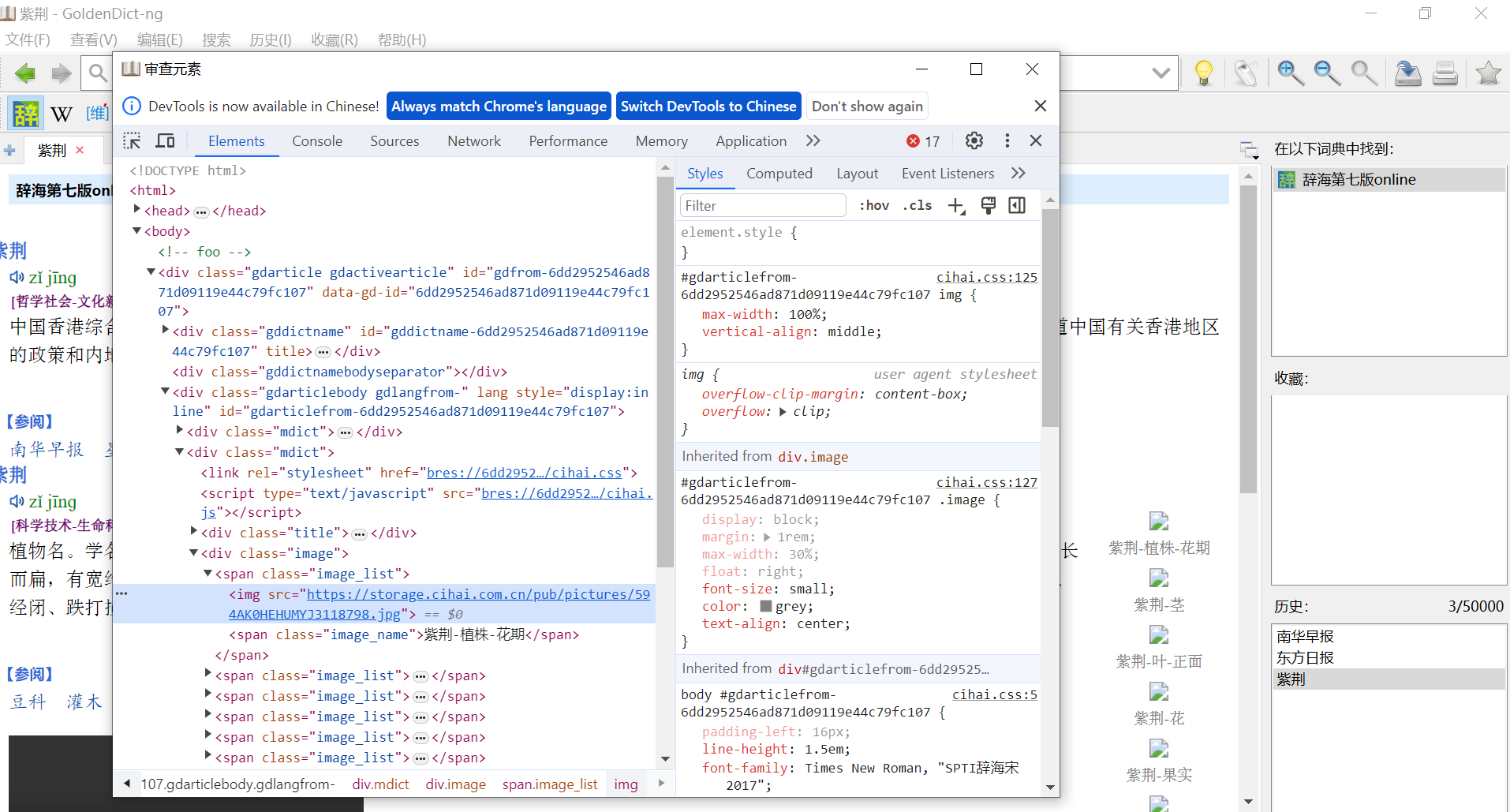 要切换到 Network 面板查看你高亮的那条链接,或者你直接试下 DictTango-Windows 能不能显示图片。