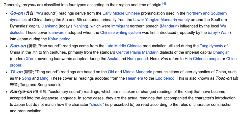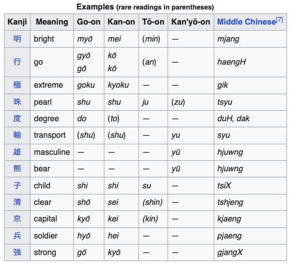 最近对Kanji以及Hanja比较有兴趣,期间也创建了另一个帖子 ( 发现一个很好的 日语字词辞典 ),发现特别是在日本是很早就有对汉字的音进行的官方文本记录,也即On’yomi (音読み — ‘sound reading’),另外Hanja中也有很多读音貌似就是原来的中文读音。