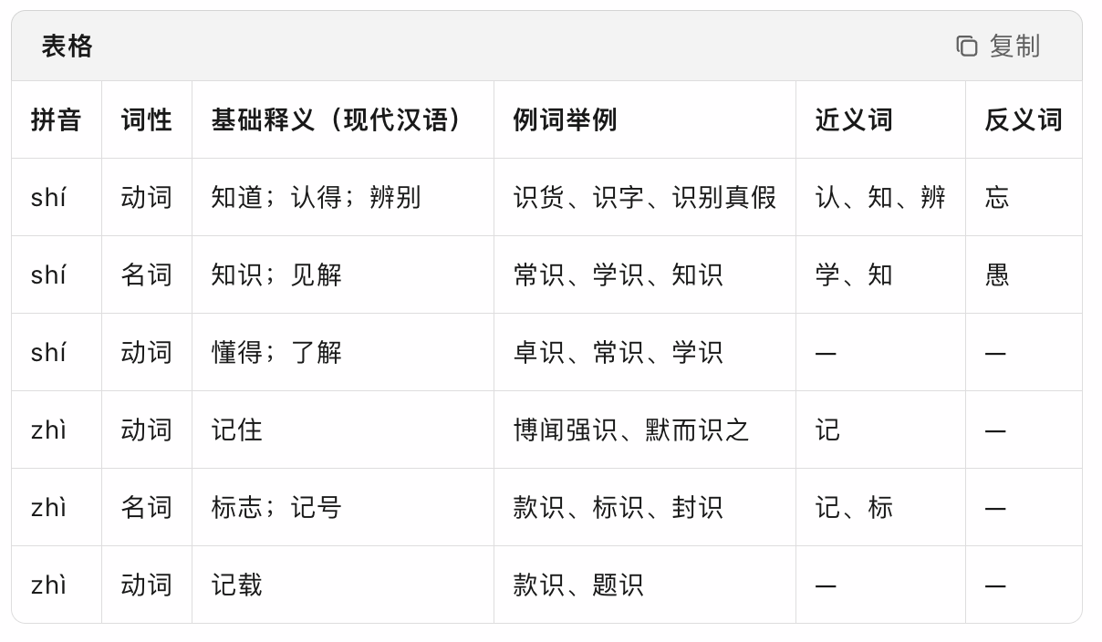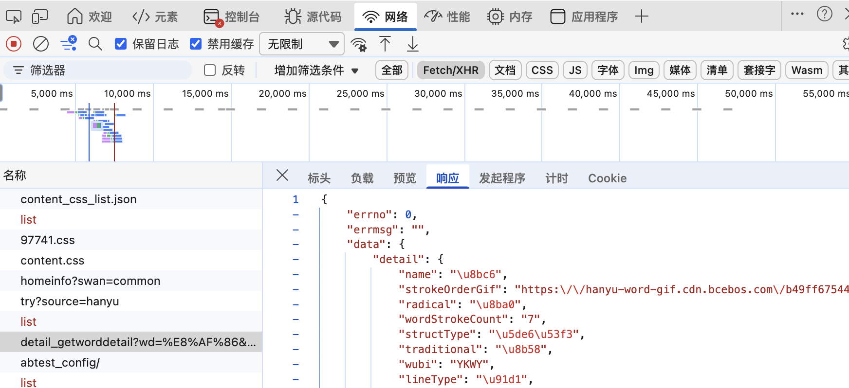 用浏览器的开发者工具(F12),打开网络面板,查看 detail_getworddetail 请求,从响应面板里,复制出这个 JSON 文本,然后提交给 kimi.com,让他给你转成表格。(表格有缺的字段可以叫他补全,也可以让他写一个通用的 Python 脚本帮你转换