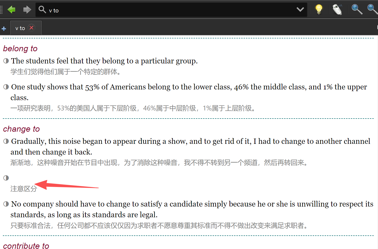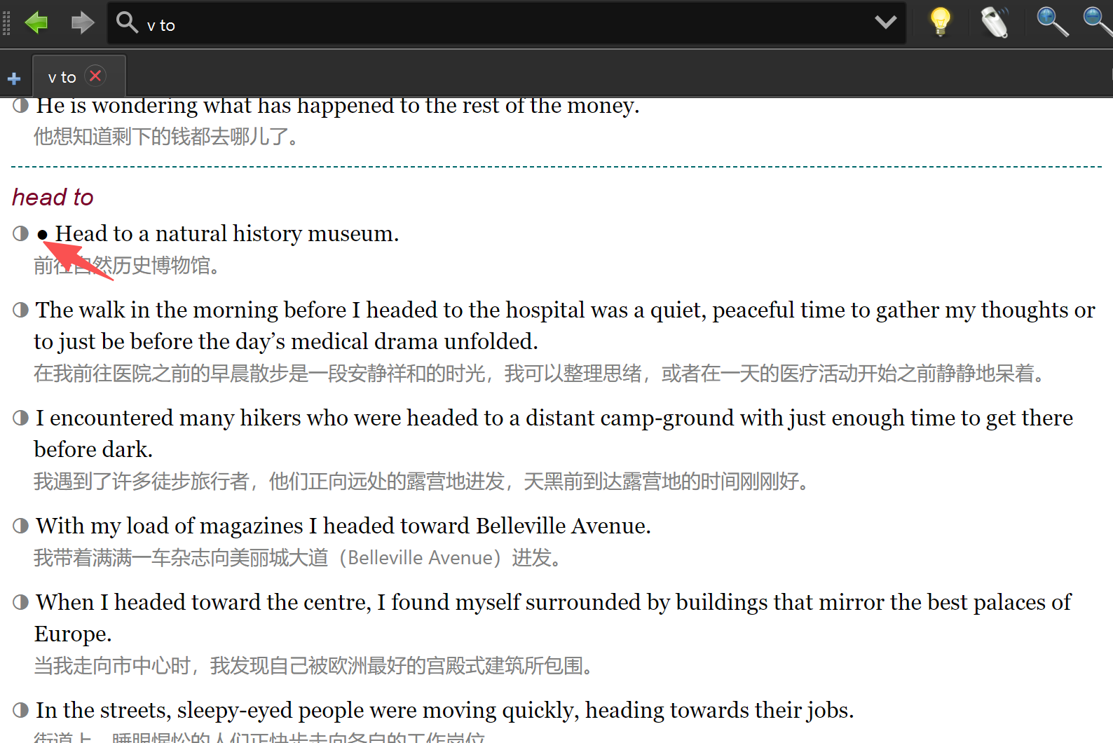 1、替换每个例句前的空心灰色圆圈引导符,为现代标准红色加重圆圈,增大尺寸,便于区分、定位、查找。