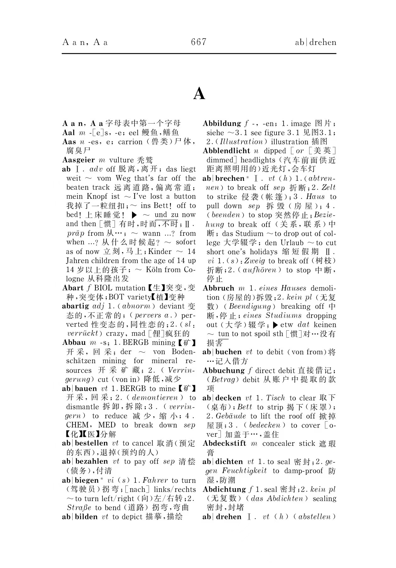 弯; (nach) links/rechts ~ die Richtung nach links/rechts ändern 向左/向右拐 an der Kreuzung links ~ 在十字路口左拐ab|bil·den <bildet ab, bildete ab, abgebildet> tr K jd bildet jdn/etw akk ab etw/jdn darstellen 将某人/某物画下来 Auf Seite 15 ist ein Schloss abgebildet. 15页上画着一座宫殿。Wobi: Abbildung 插图