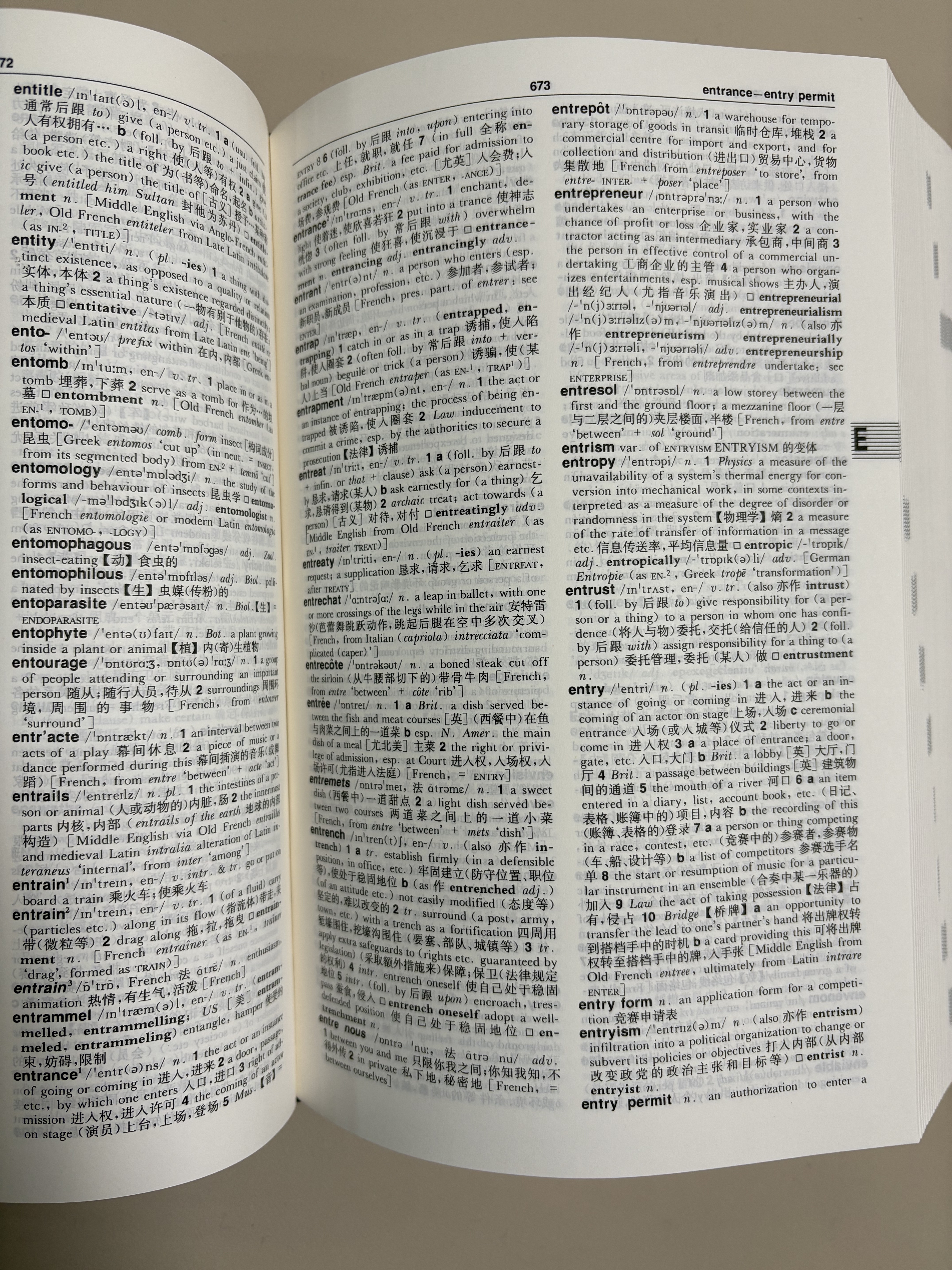 打开词典,封面第一页和封底最后一页都有一张塑料薄膜,不知道干什么用的。查看了下词典正文,印刷质量上乘,甚至感觉比我购买的近几年出版的词典印刷效果还要出色,阅读体验十分舒适。按常理,这本20年前出版的词典早已绝版,可眼前这本不仅外观崭新,闻起来也没有旧书特有的陈旧气息,纸张也未出现泛黄或斑纹现象,不知道是怎么保存的?或者说是最近才印刷的?搞不太懂,但基本能确定是正版全新的,即使不是,也看不出没啥区别。