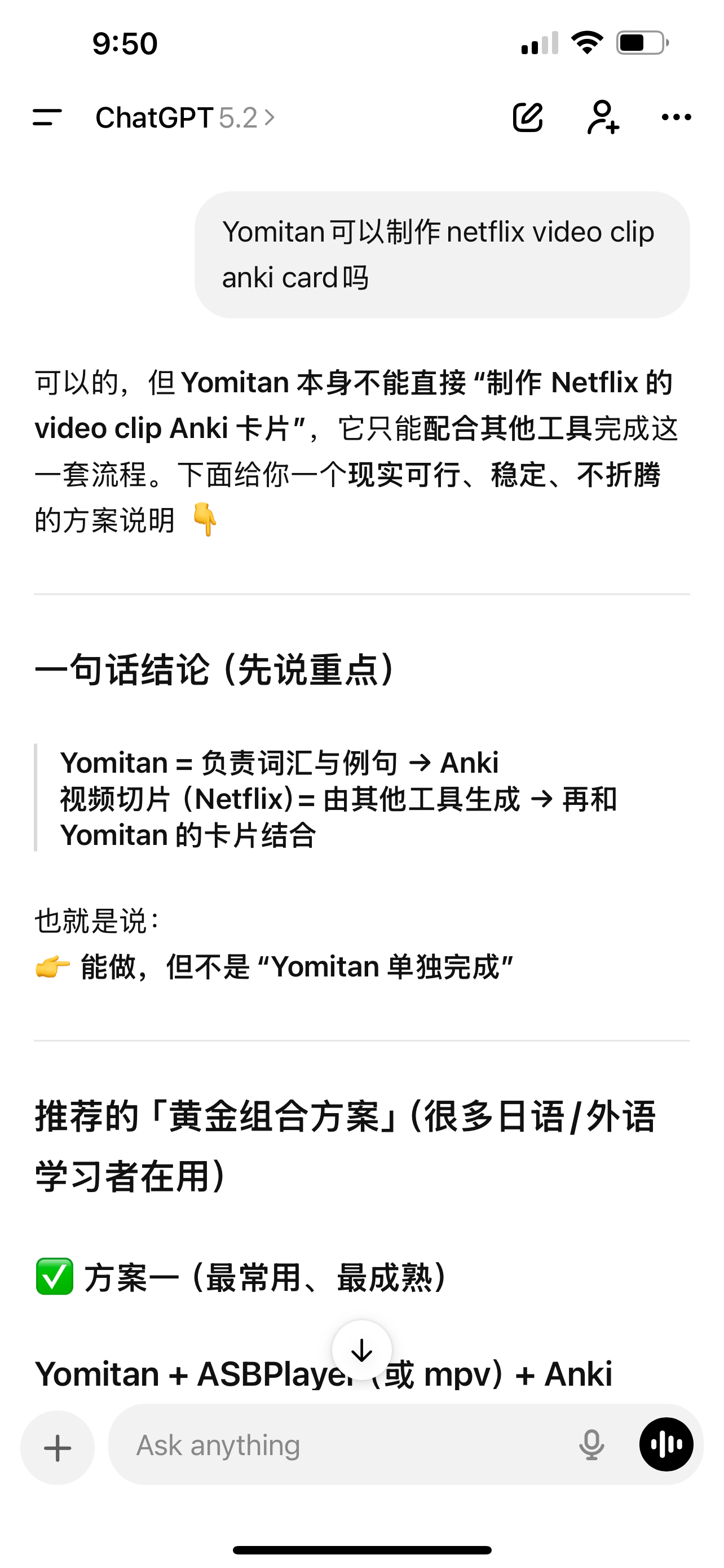 Yomitan + Anki 的配置能让你用一种叫做 imersion 的方式的方式学习语言,也就是通过沉浸在该语言的语料中(读书看剧等)而不是做题来学习语言,而Yomitan + Anki 的组合则解决了这个方法的所有技术难题,让你能够愉快地进行 imersion。