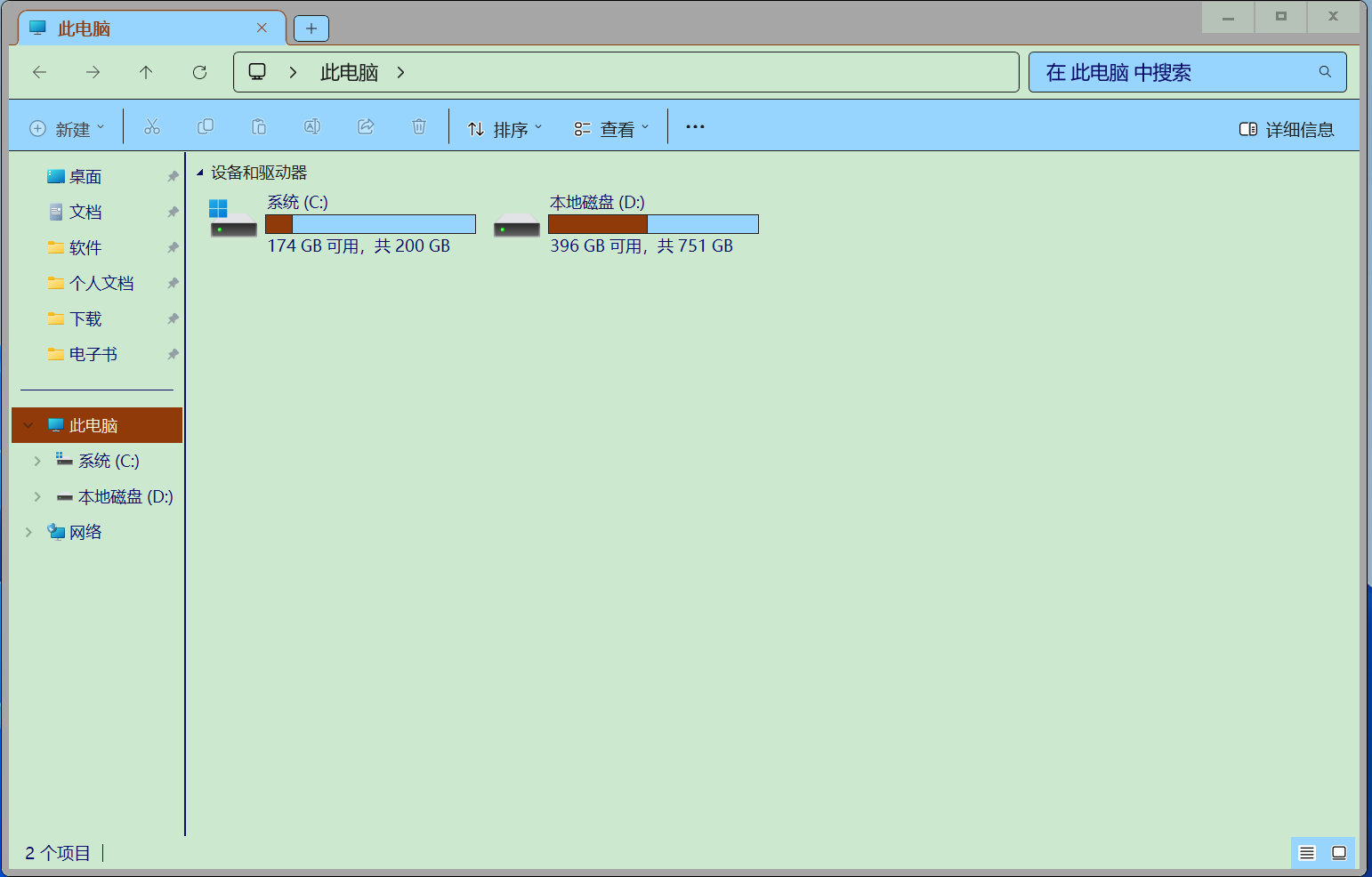 曾经使用win11的深色背景,虽然不像白色背景那么刺眼,但也有一种压抑感。使用这个主题后,几乎所有的窗口、页面都是统一的护目色,看上去很清爽,视觉效果良好,喜欢这样的颜色。