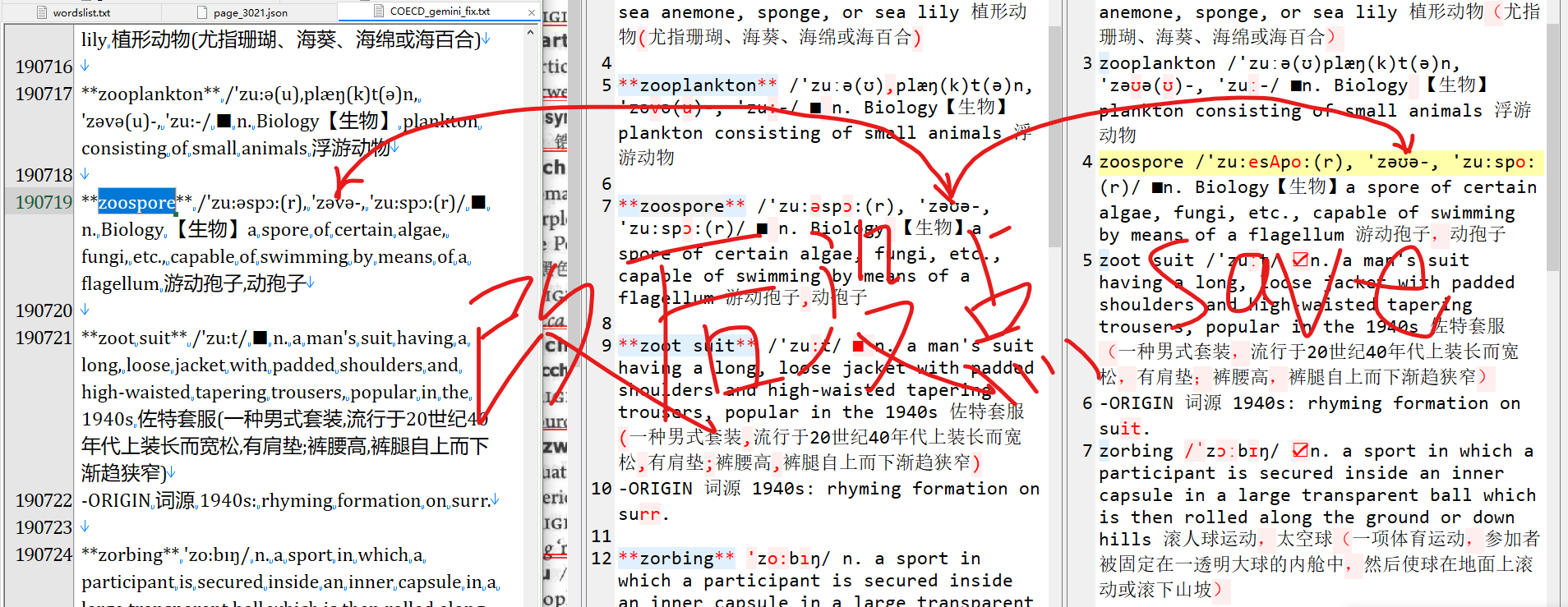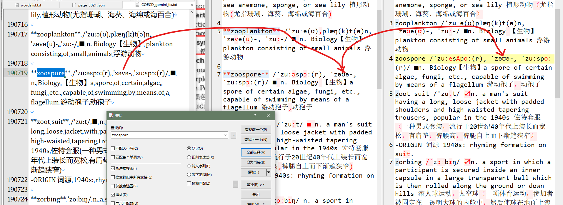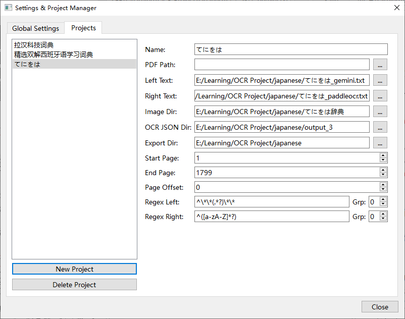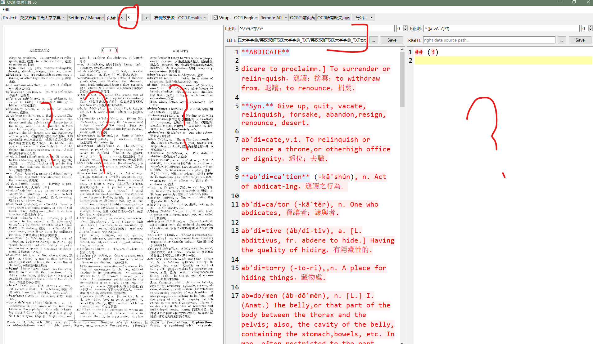 OCR文本默认是用来定位图片位置的,加载每一页时自动从指定的json目录中载入,选择数据源为OCR Result才会显示对应的文本,如果要导出ocr文本可以用导出菜单中选择导出全部ocr文本的功能。