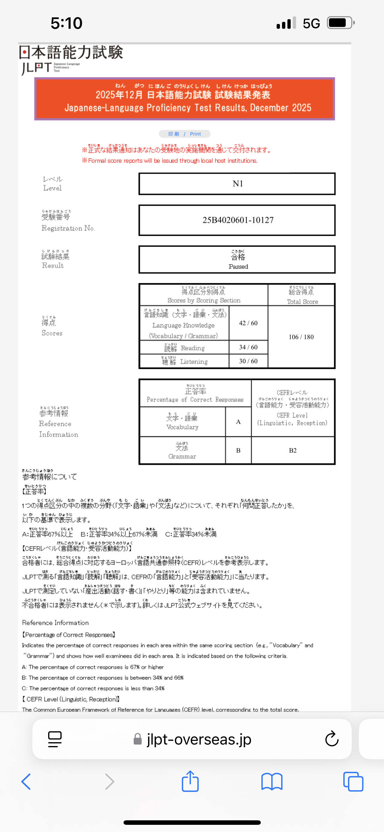 话说jlpt成绩出来了