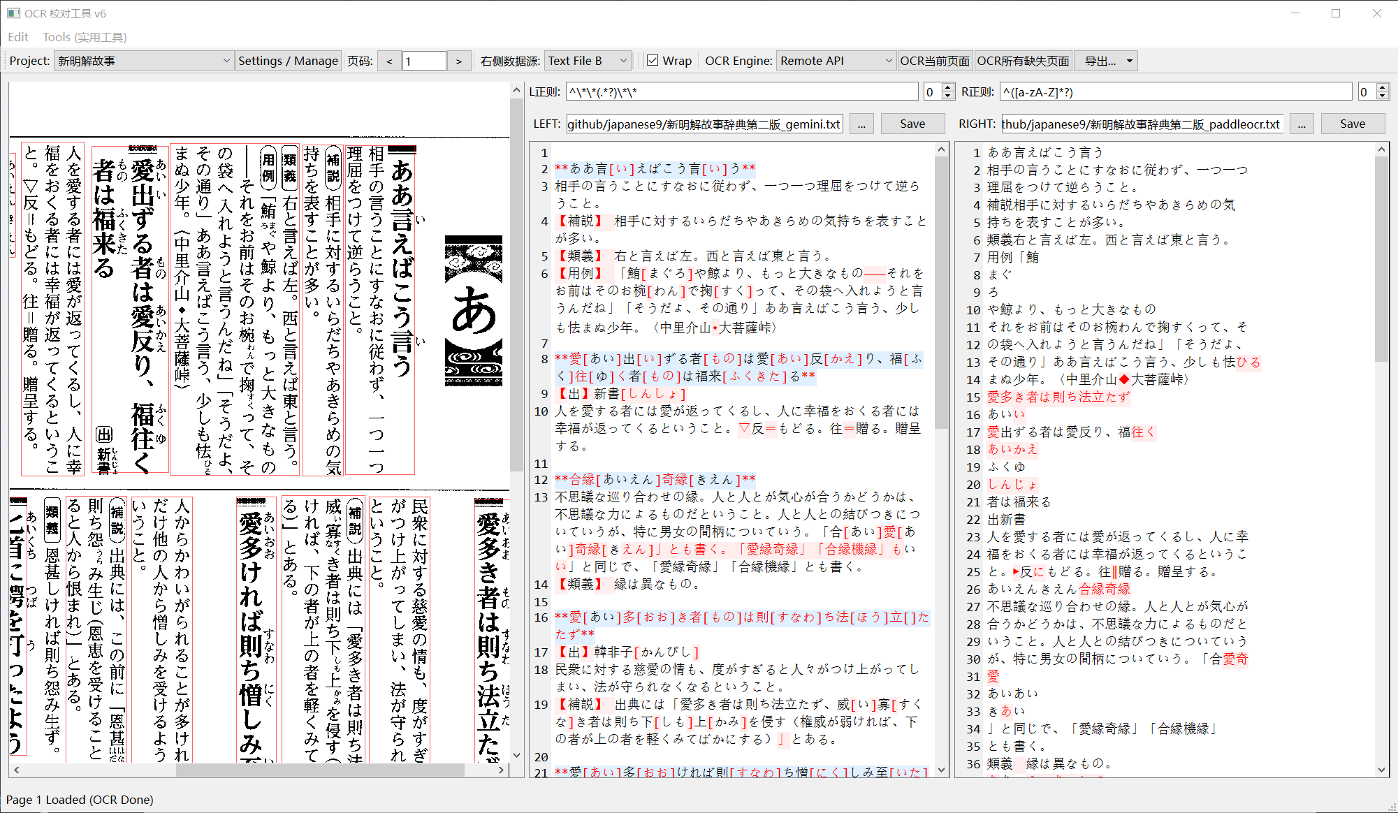 这个我用paddleocr和gemini识别了一遍,本来我打算直接校对完的,结果发现因为furigana问题非常麻烦,预计校对时间超过20小时。目前我只校对了前5页(就是gemini的那个文本),先把文本发上来,全书正文共704页,加附录35页,希望有爱好者合作完成。