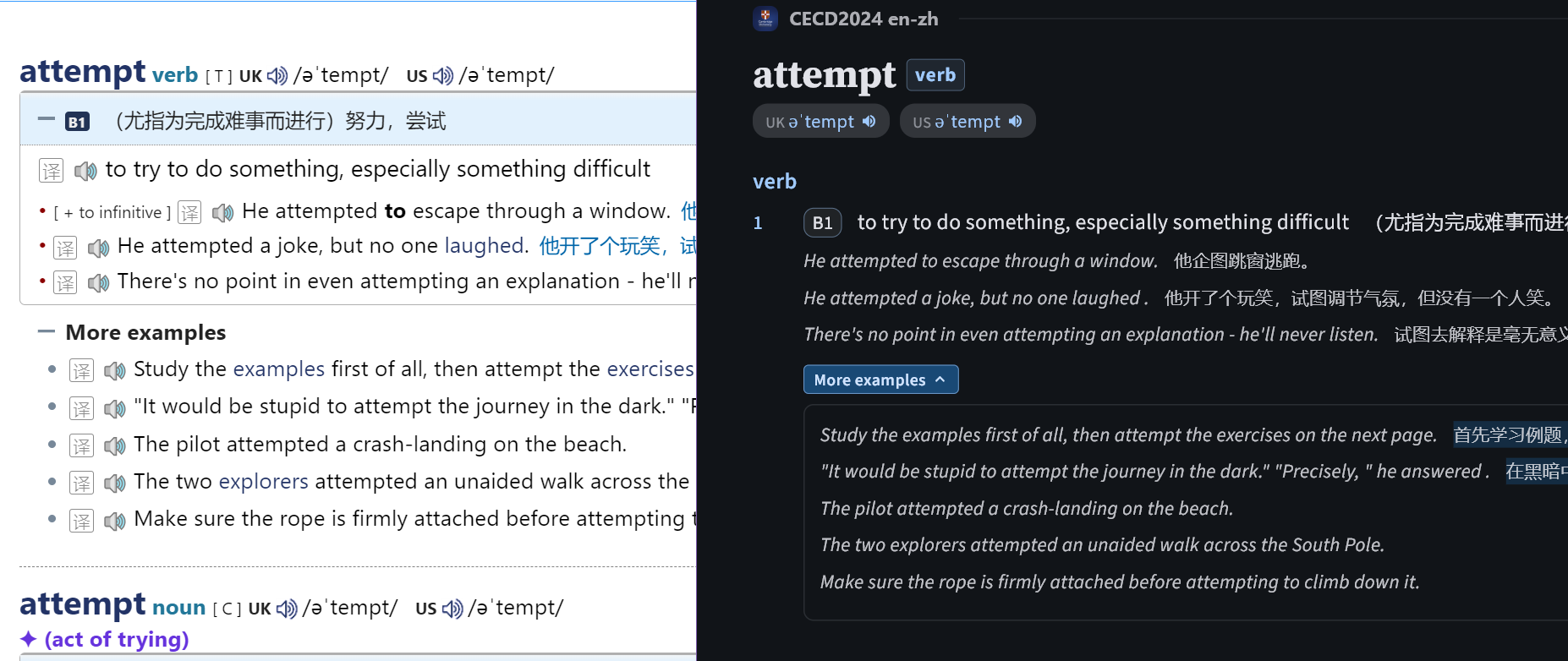 剑桥词典的这个more_examples和sense并列了