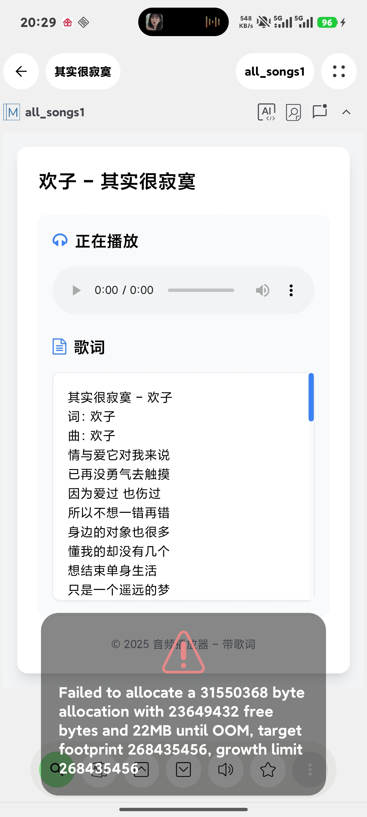 尝试分配 31550368 字节内存失败,当前剩余 23649432 字节,距离内存溢出(OOM)还有 22MB,目标内存占用量为 268435456,内存增长限制为 268435456。