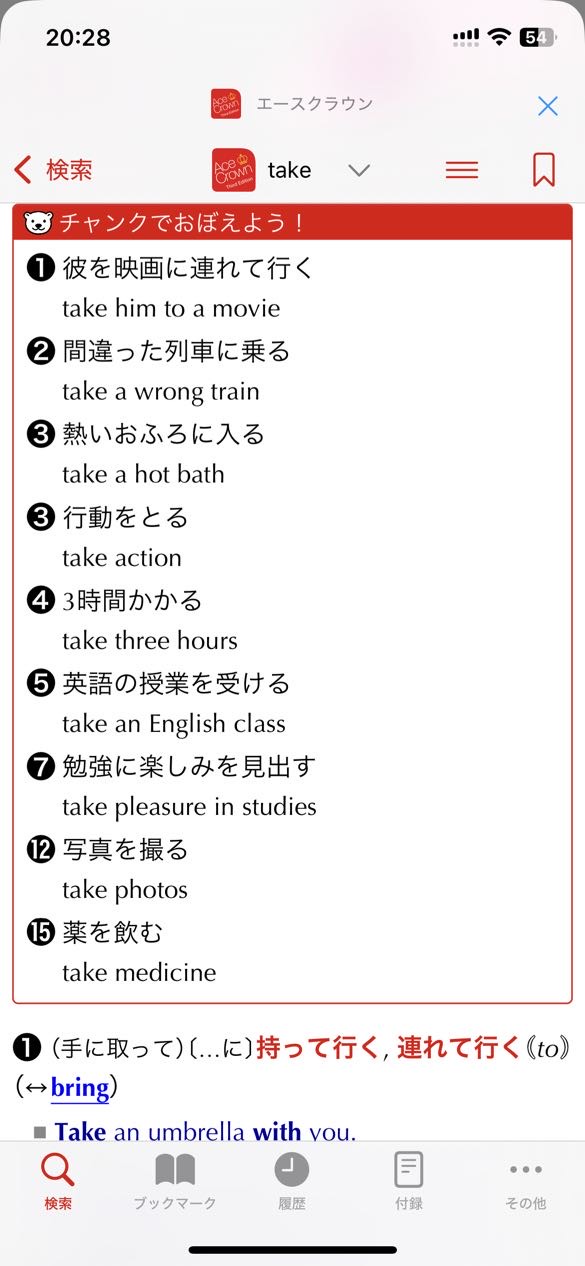 2. “用语块记忆!”专栏(チャンクでおぼえよう!) 这是第三版新增的实用板块。它将基本动词常见的“语块”(Chunk,即具有完整意义的几个词的组合)提炼出来,并刻意按照**“日语 → 英语”**的顺序排列。这种设计旨在训练读者的英语造句本能,让地道的英语表达能够脱口而出。