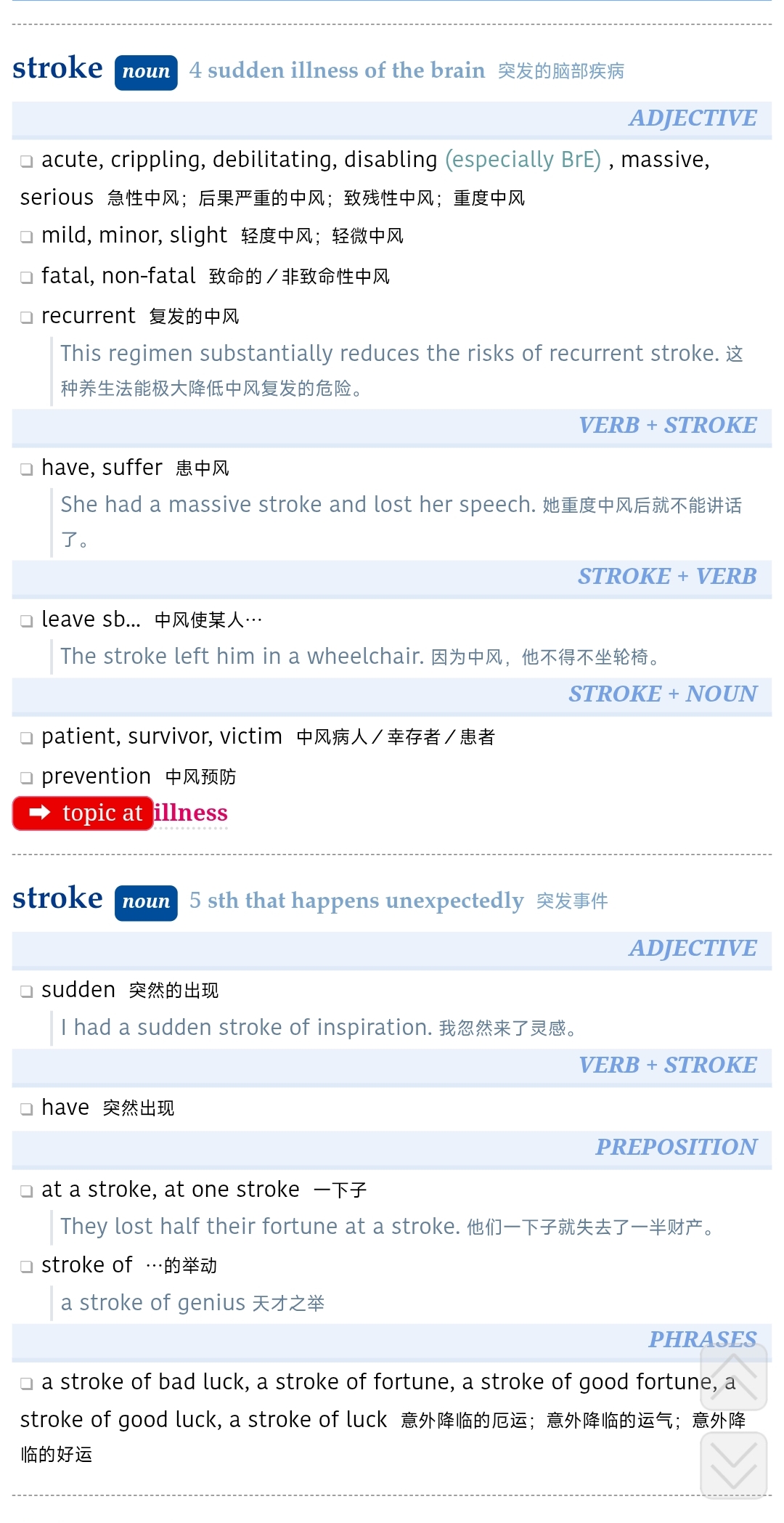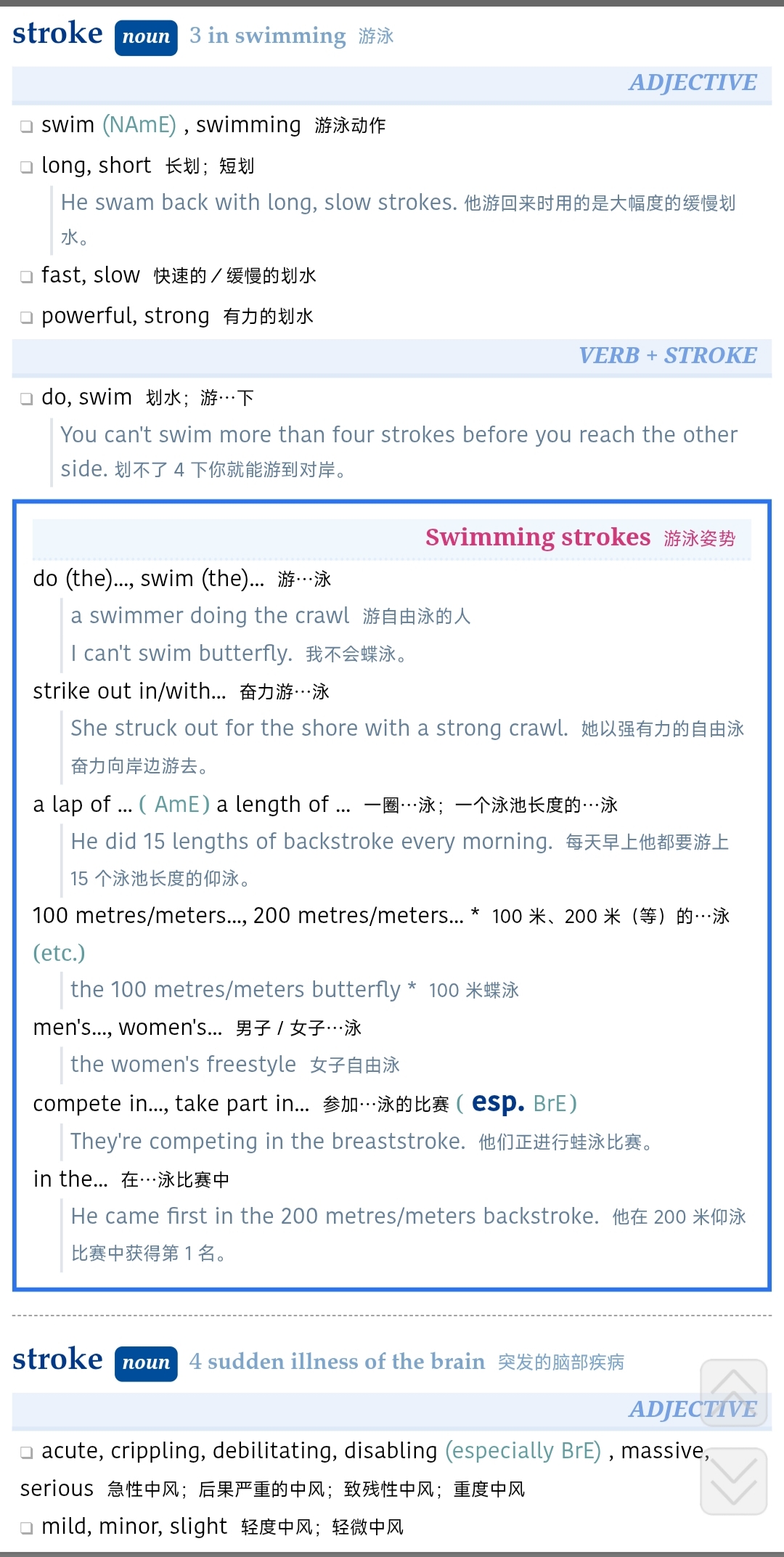 你说的这个细节是原著索引表的简略注释,纸质书以及之前各版本,索引它展不开啊。现在这正文全组都展开了,正文每组英英释义也一并呈现,一目了然啊,这个小索引不重要了,原版词典你不翻到最后附注的索引小字都看不到这个。