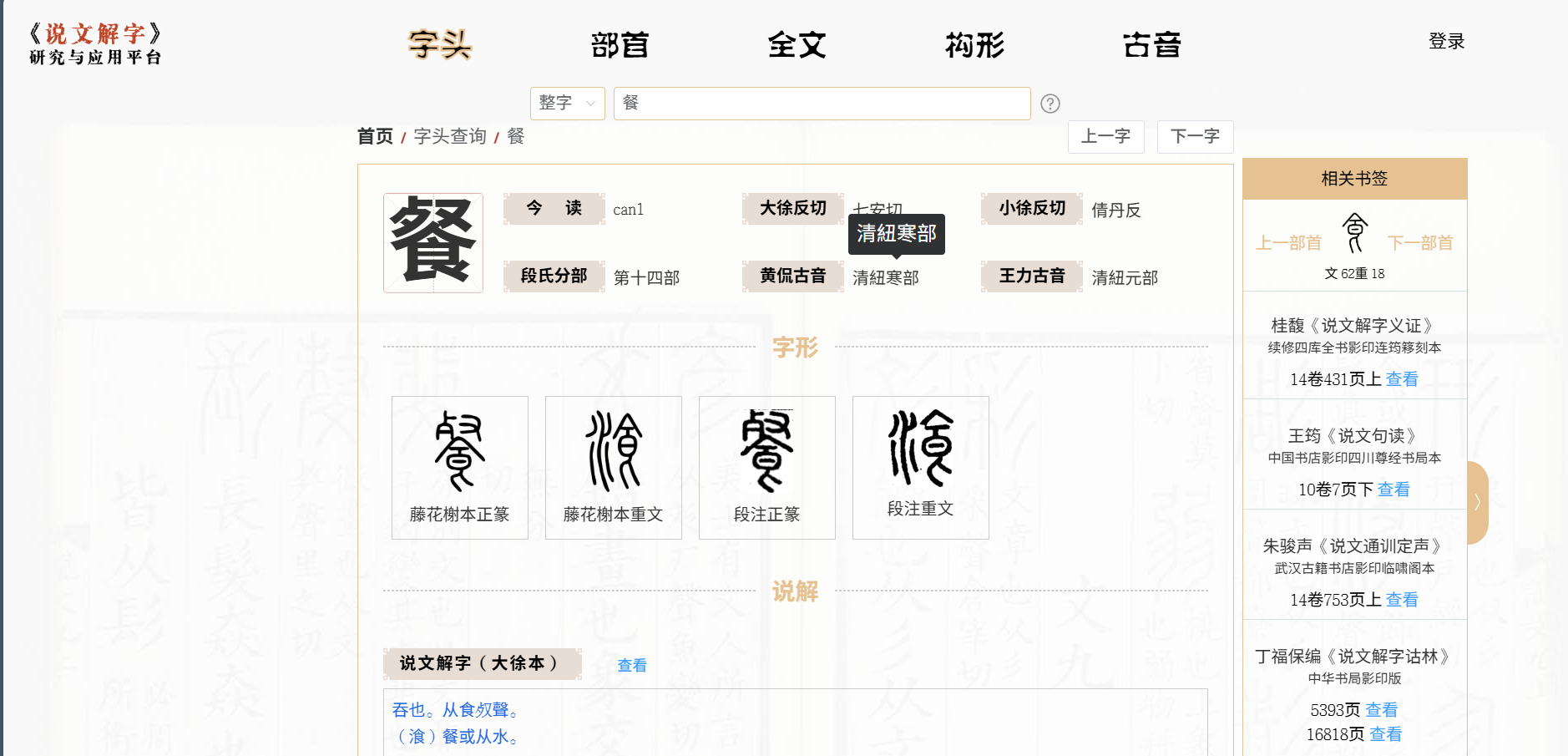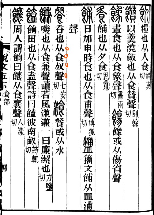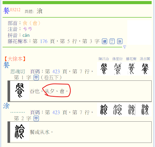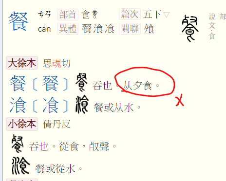 餐字大徐本正文文本好像有問題,原書是「从食𣦼聲」。